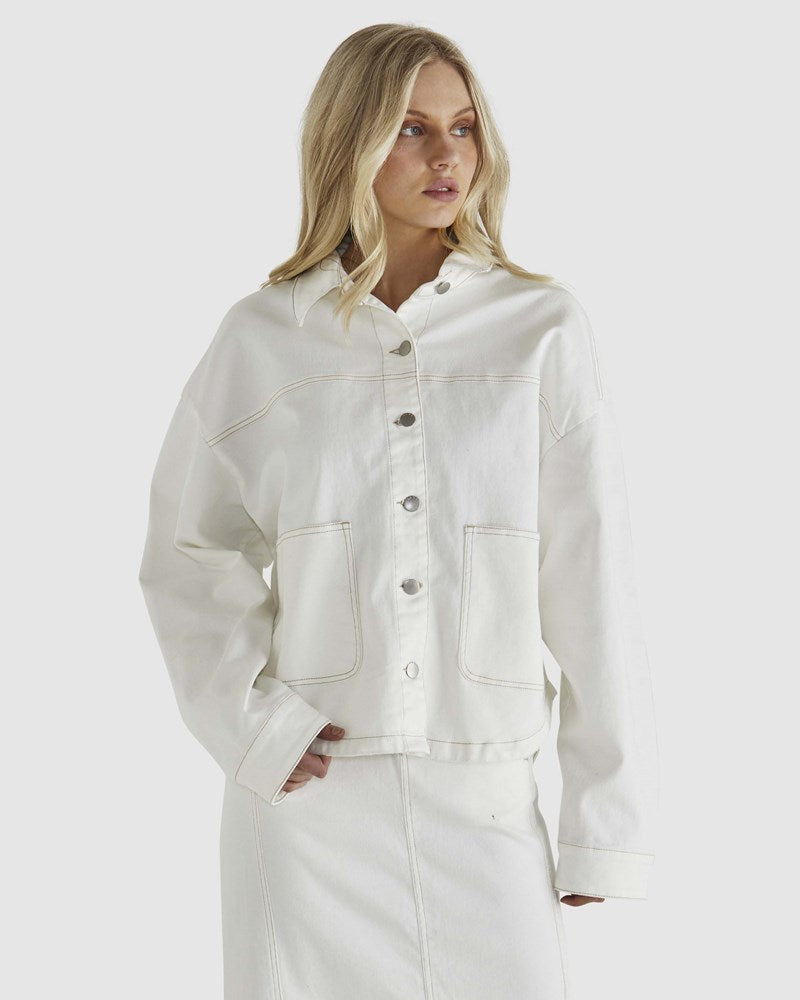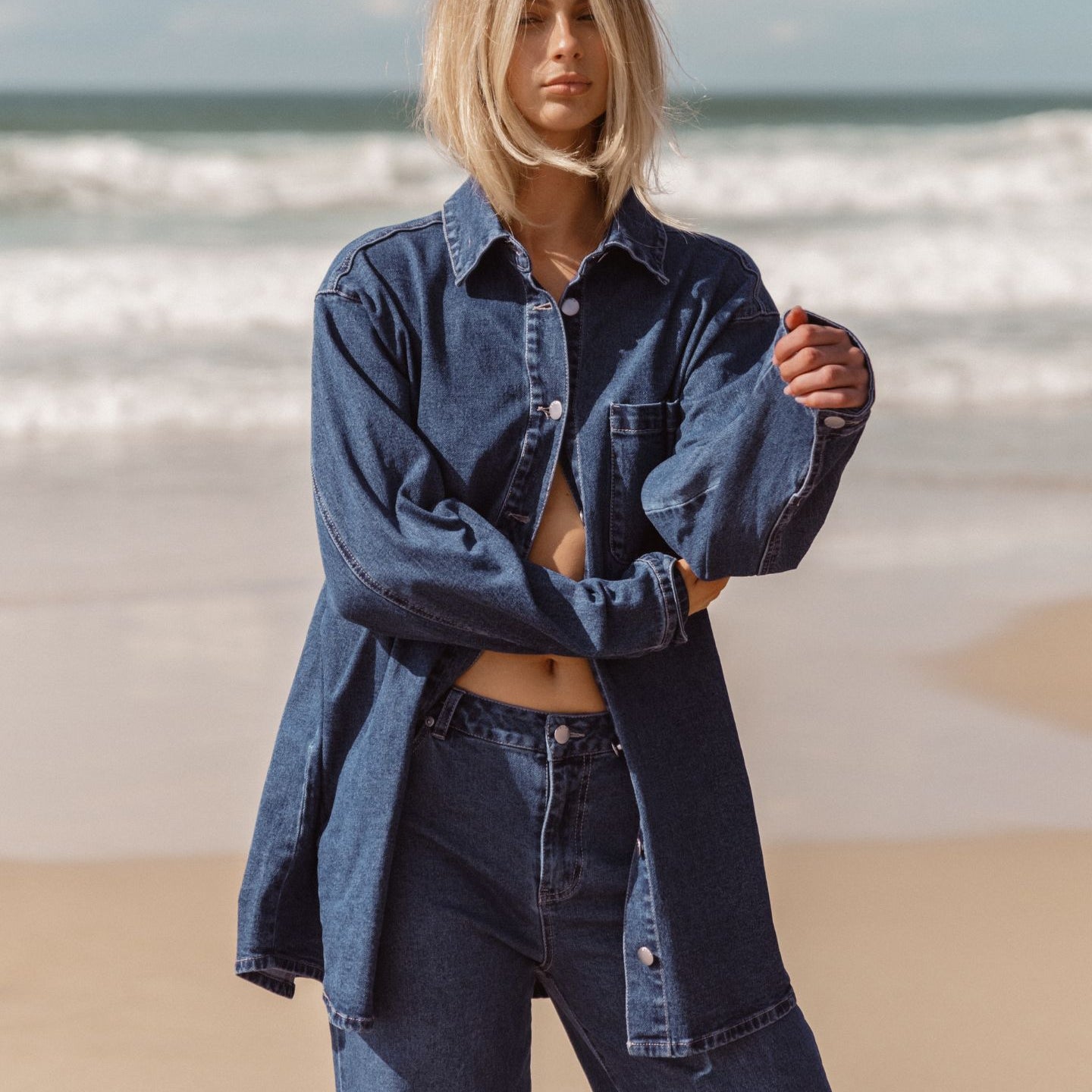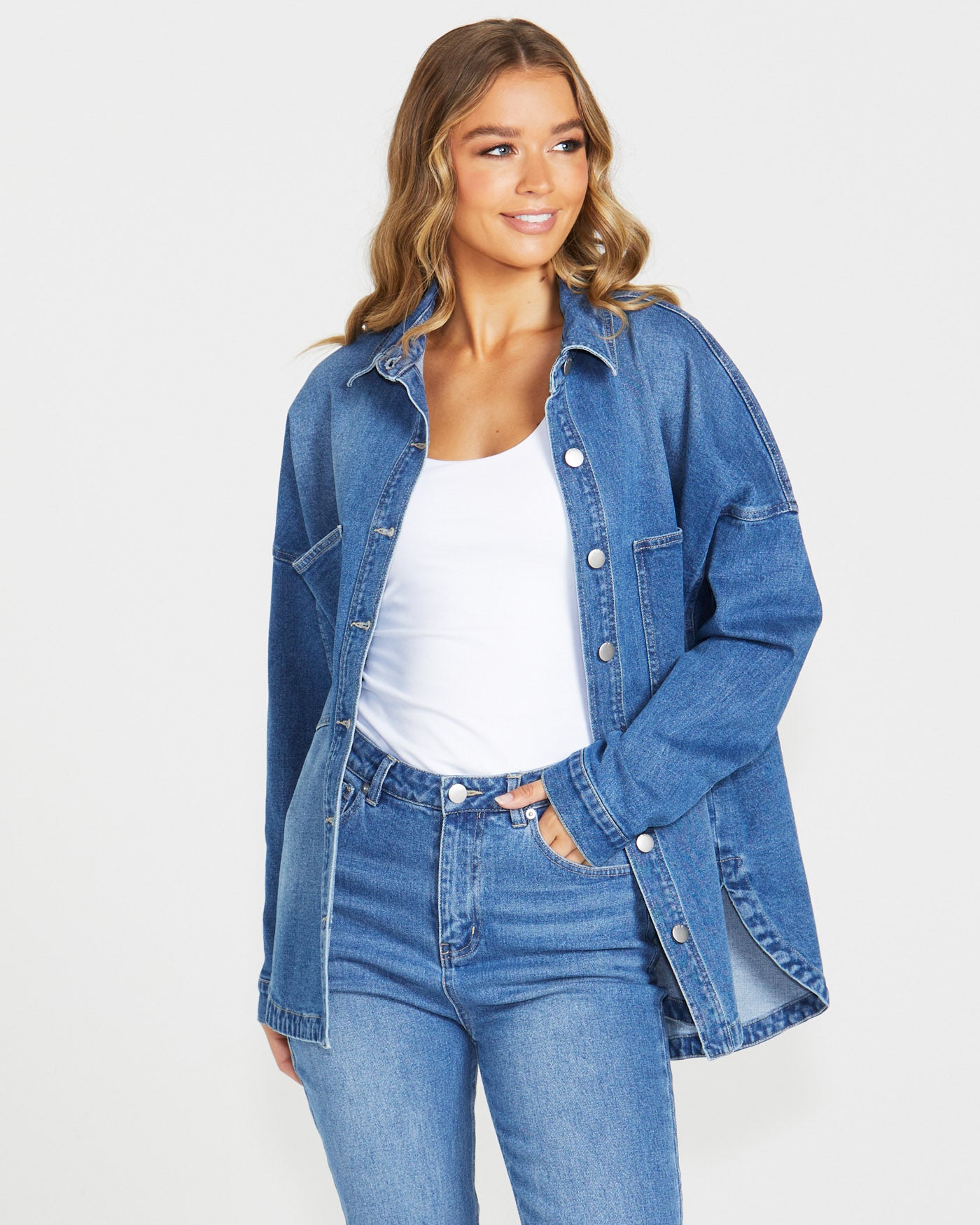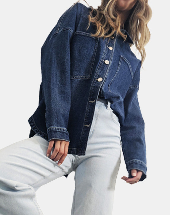 Rhea Cropped Denim Jacket - 70 Wash Blue
