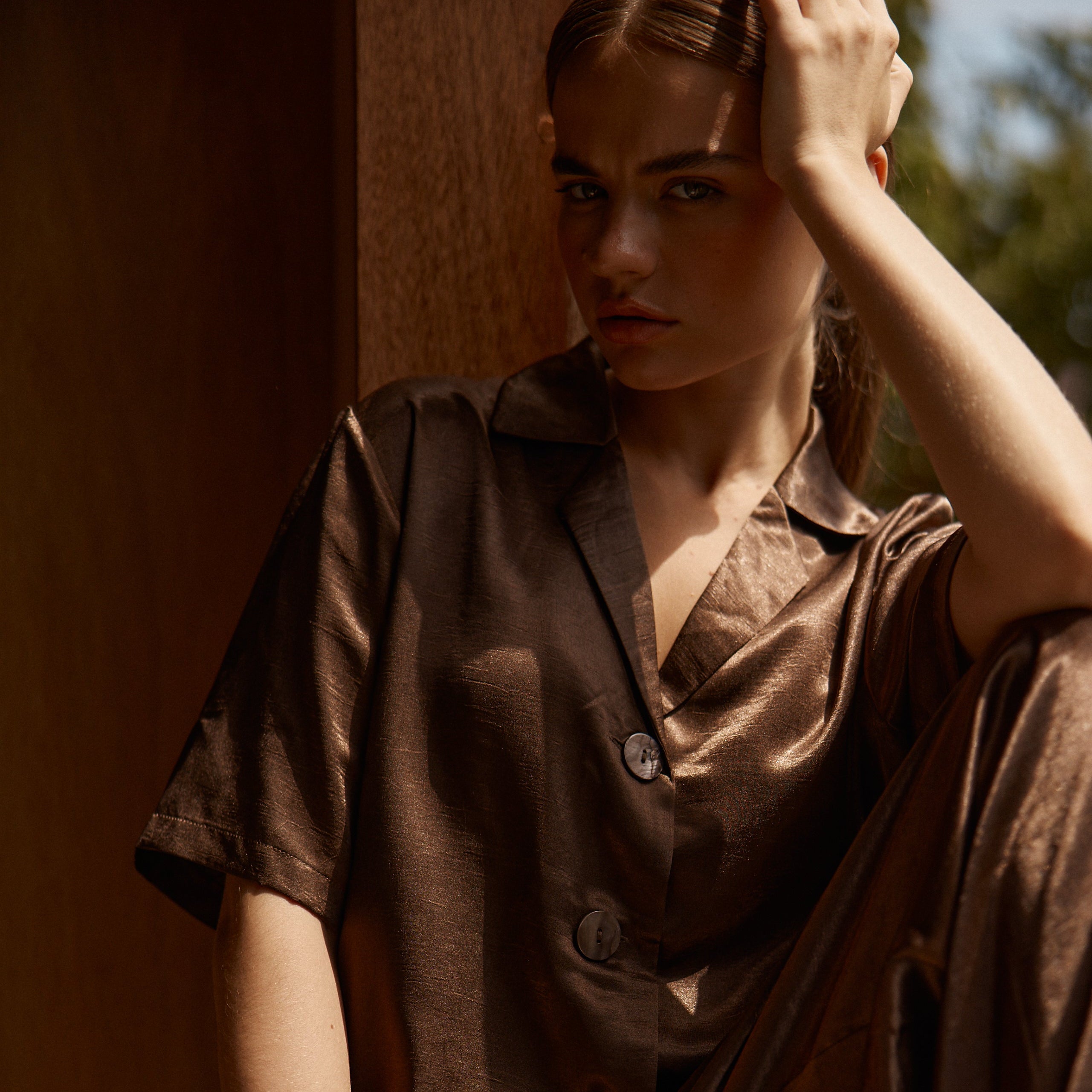 Abia Gathered Front Jersey Dress - Chocolate