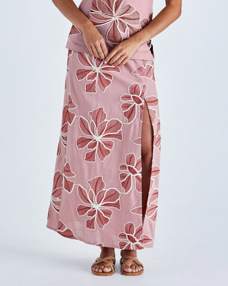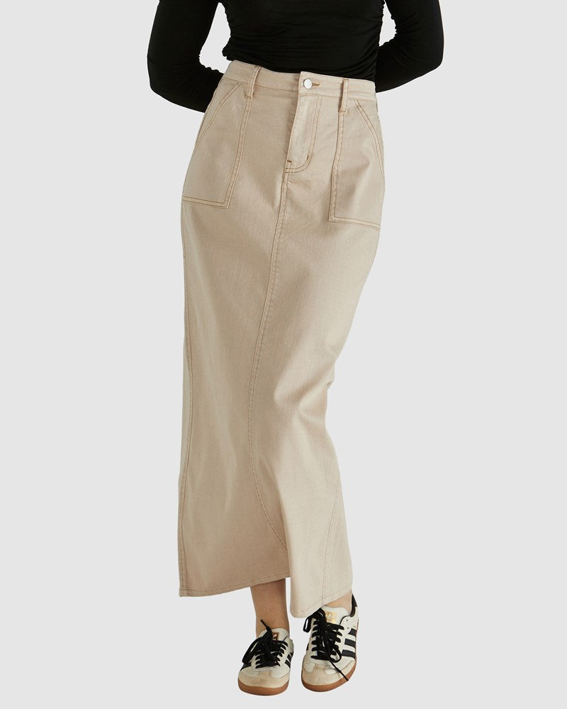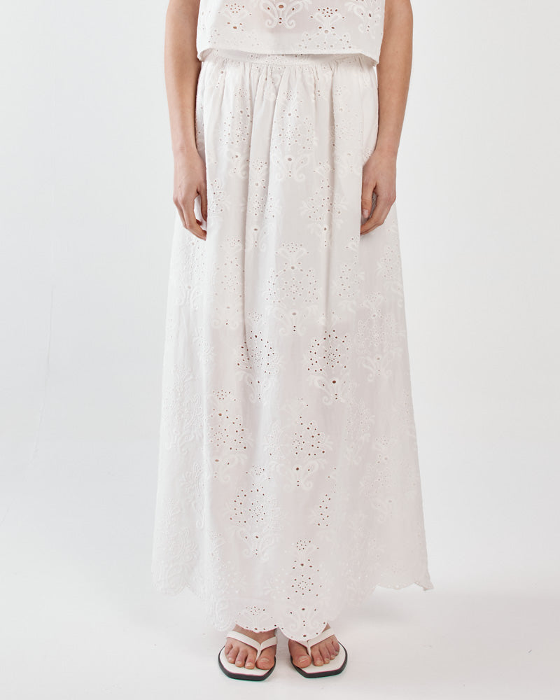 Vale Scalloped Denim Skirt - Mid Blue Wash