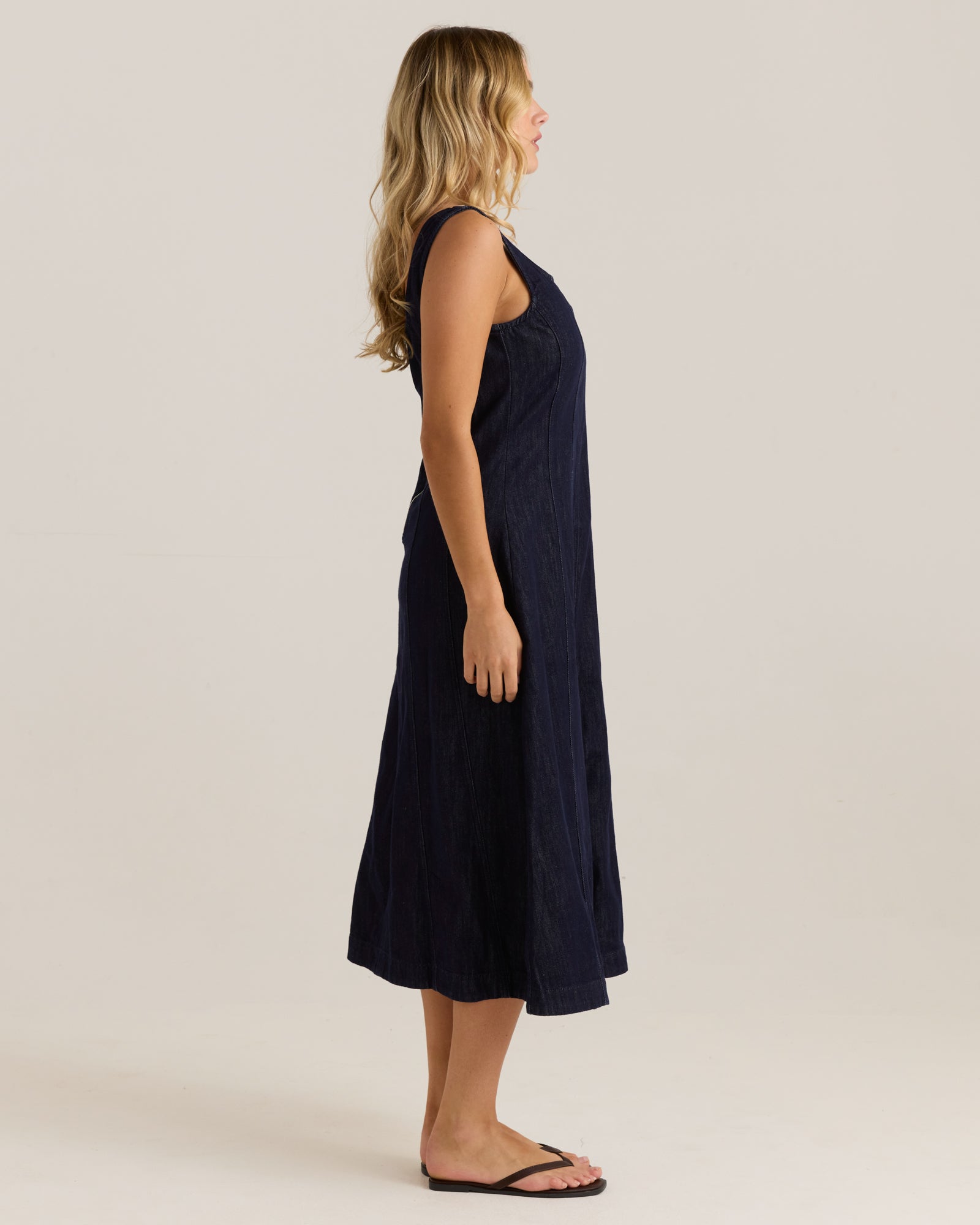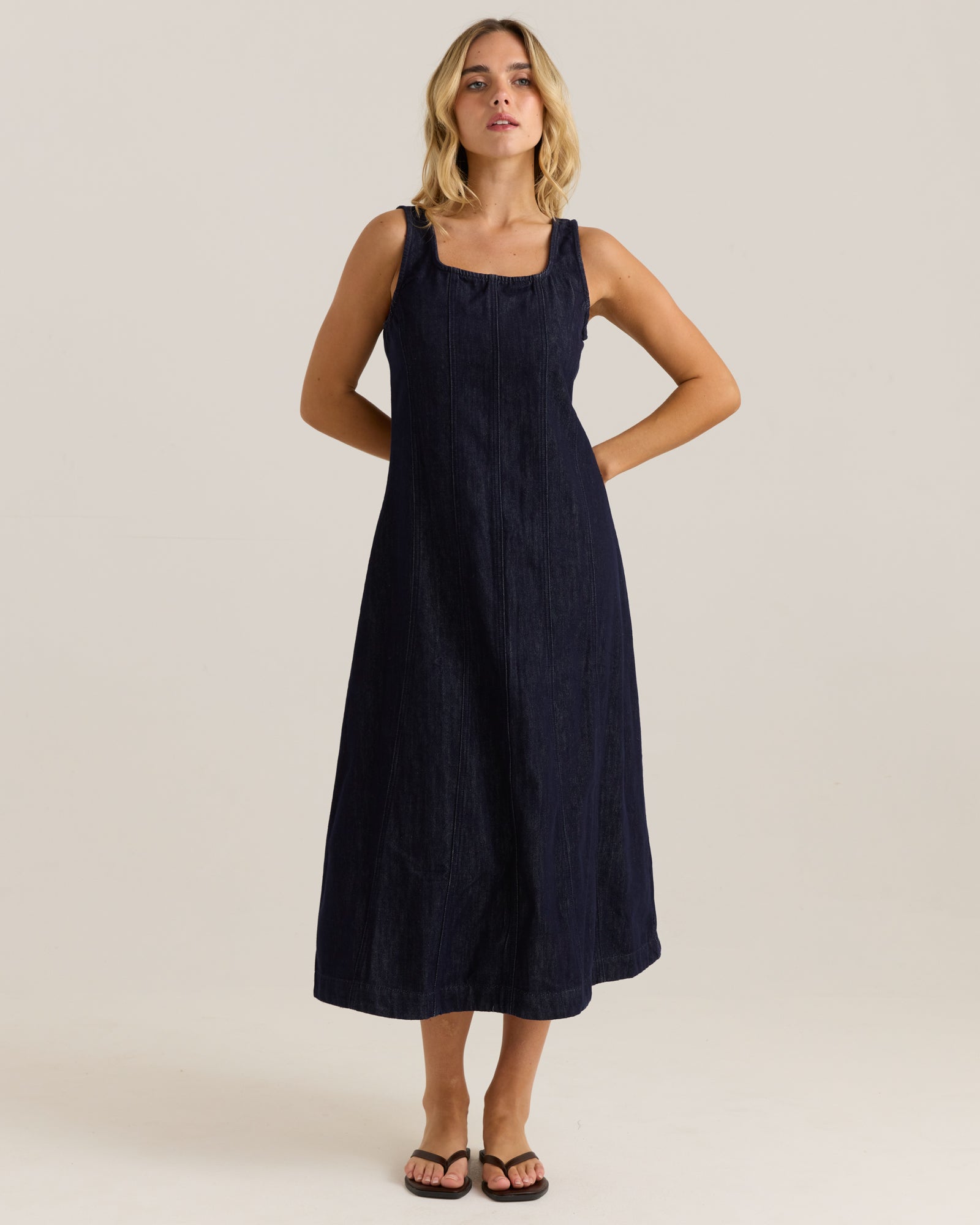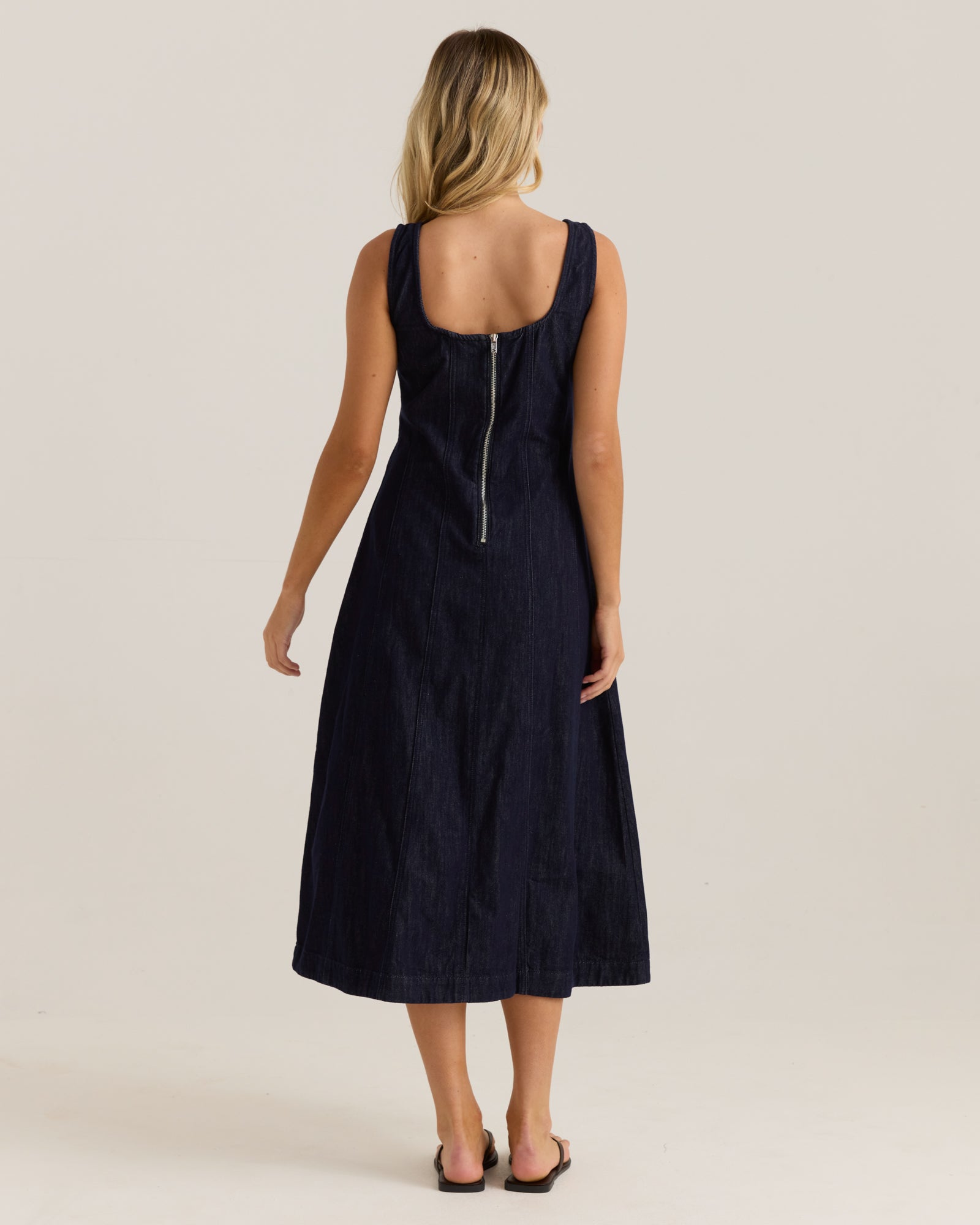 Denim dreams come true with the Ainsley Dress! With thick straps, cool panel details, and a sleek zip-back, this midi is your new go-to for an effortlessly edgy vibe. It’s fitted in all the right places and perfect for layering or rocking solo. Throw it on and feel instantly on-trend.