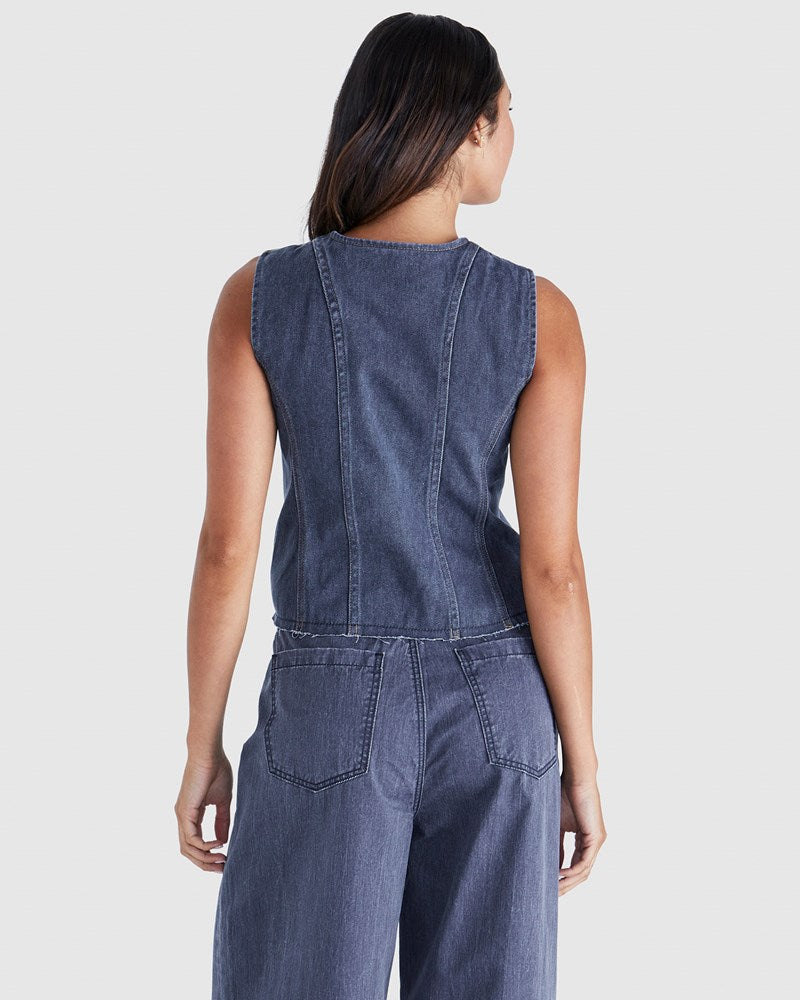 This isn’t your average denim vest—meet the Ainsley! With bold thick straps, raw hem edges, and a laid-back button front, it's giving off-duty energy in the best way. Wear it over a tee or solo for an effortlessly cool look. We’re obsessed.