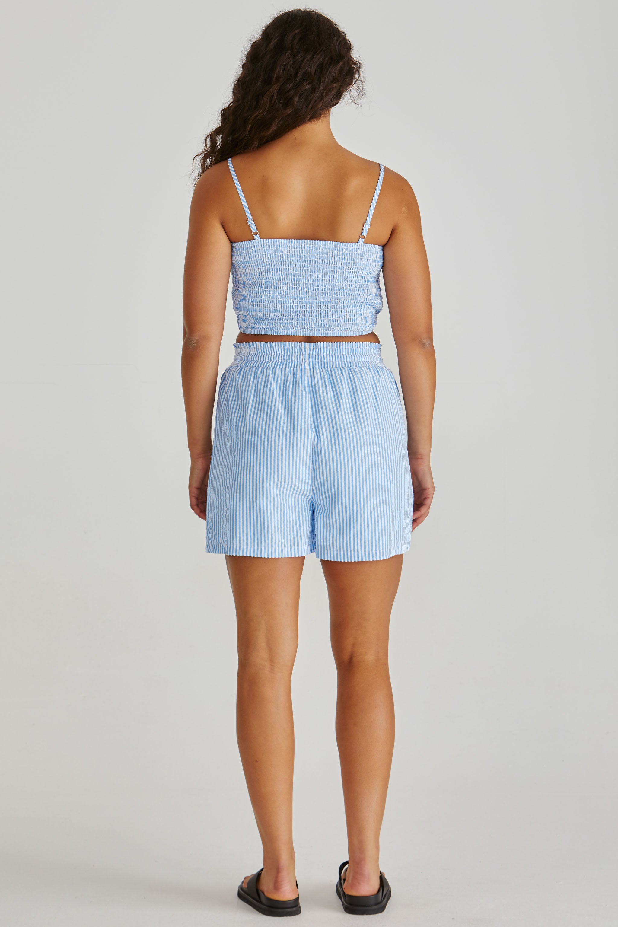 The Alani Short keeps things light, relaxed, and effortless. Made in a breezy seersucker texture with an elastic waist and self-fabric tie, it’s the definition of easy dressing. Side pockets make it as practical as it is cute. Pair it with the Alani Shirt for a matching moment.
