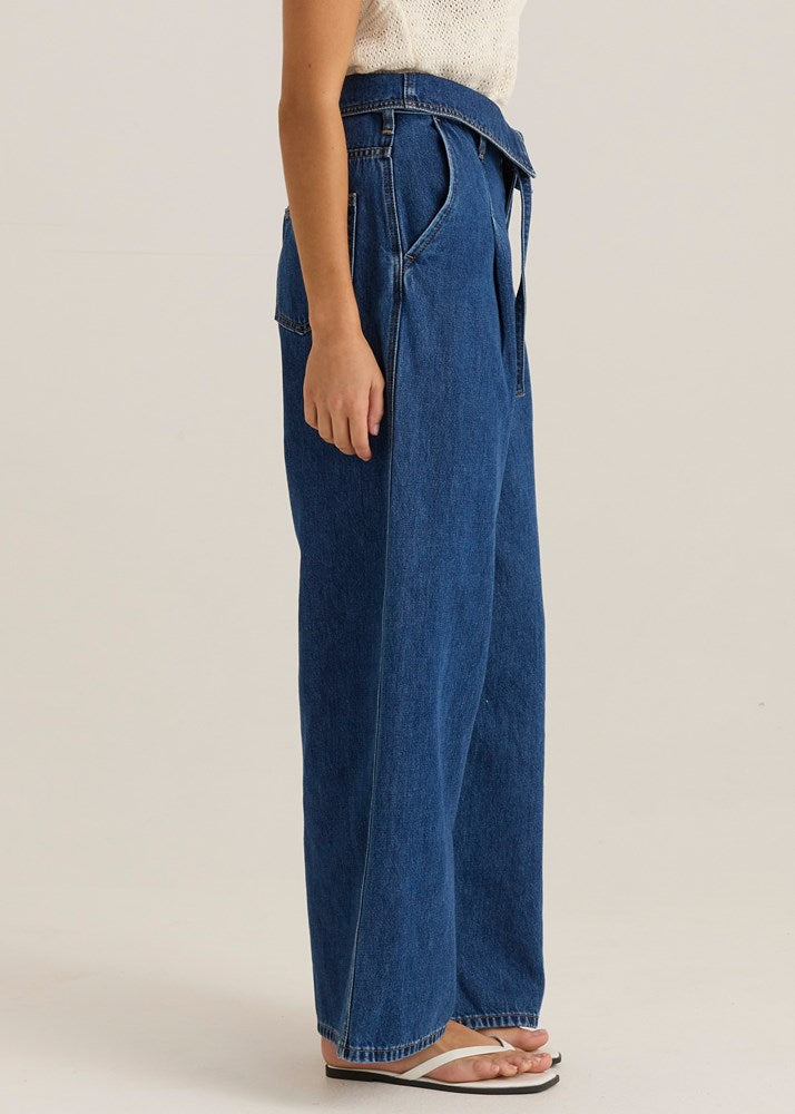 These wide-leg jeans bring an on-trend edge with a foldover waistband and D-ring belt that shapes beautifully, giving you a look that feels flattering without trying too hard. Side pockets keep things practical, while the relaxed fit brings all-day comfort. Easy to dress up or down, they’re your new cool-girl staple.