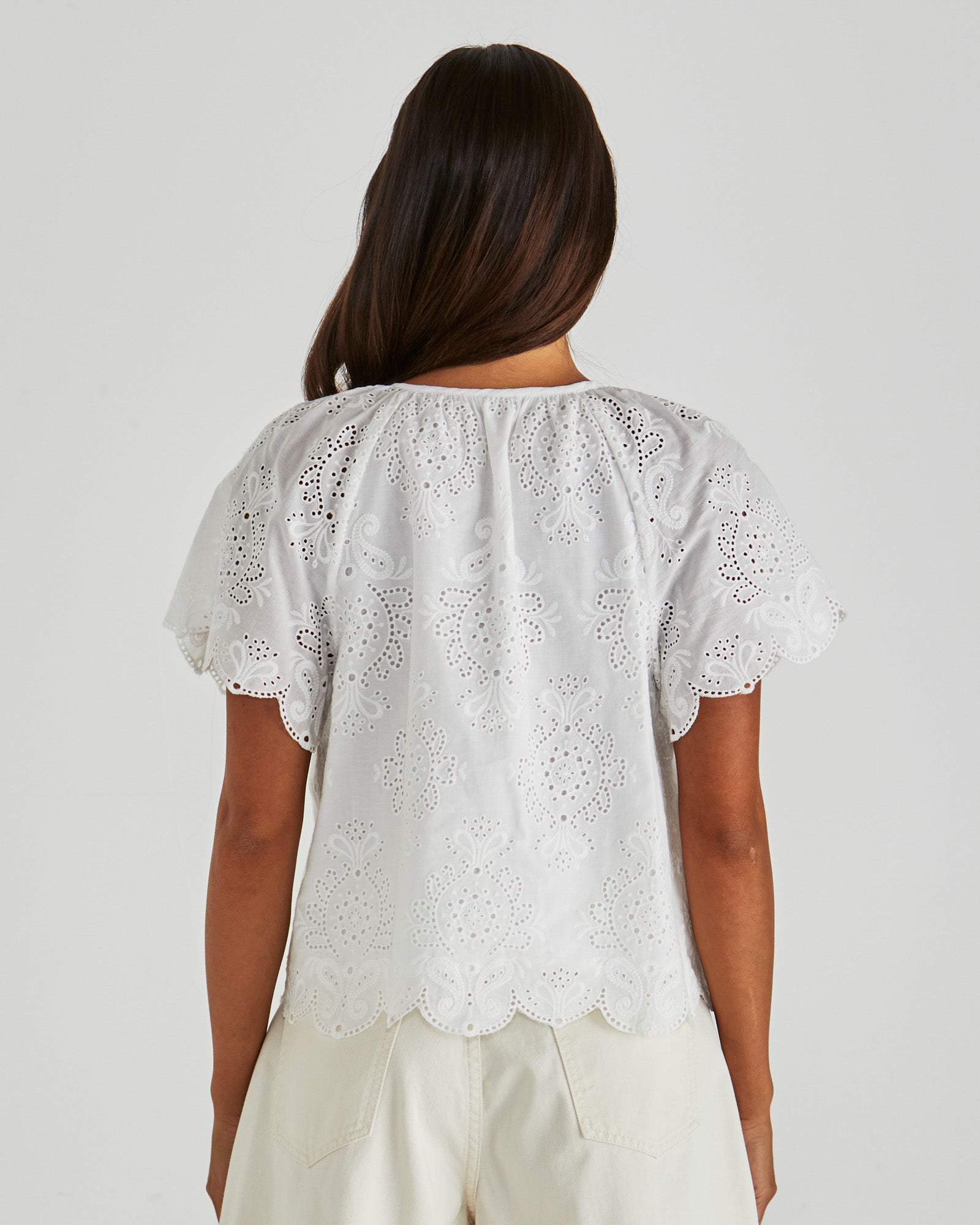 The Ani Blouse brings a soft, romantic vibe to your summer wardrobe. With scallop detailing and broderie fabric, it's equal parts pretty and polished. The relaxed fit makes it feel effortless—just the right kind of elevated.