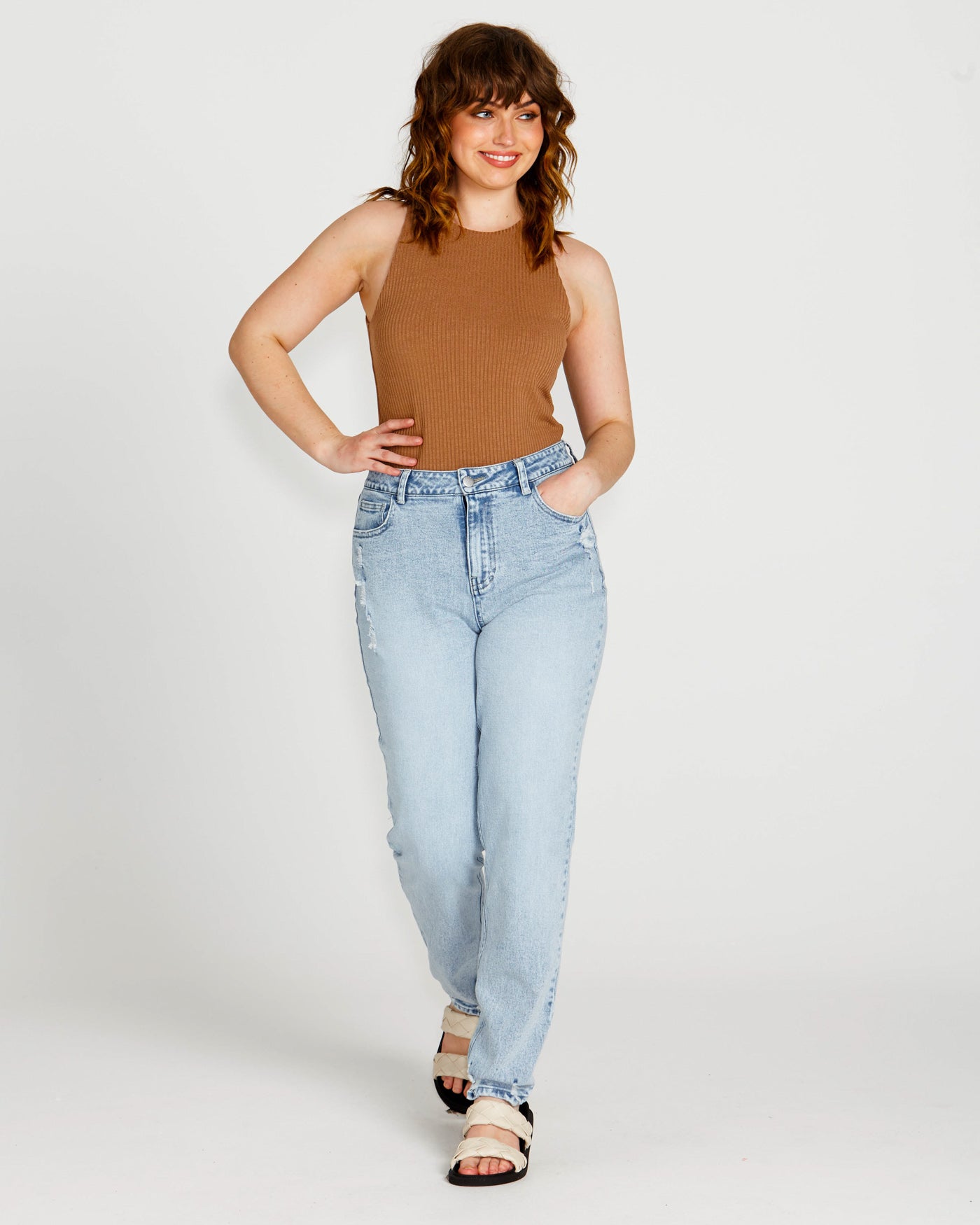 Aubrey High Neck Cotton Basic Singlet - Brown