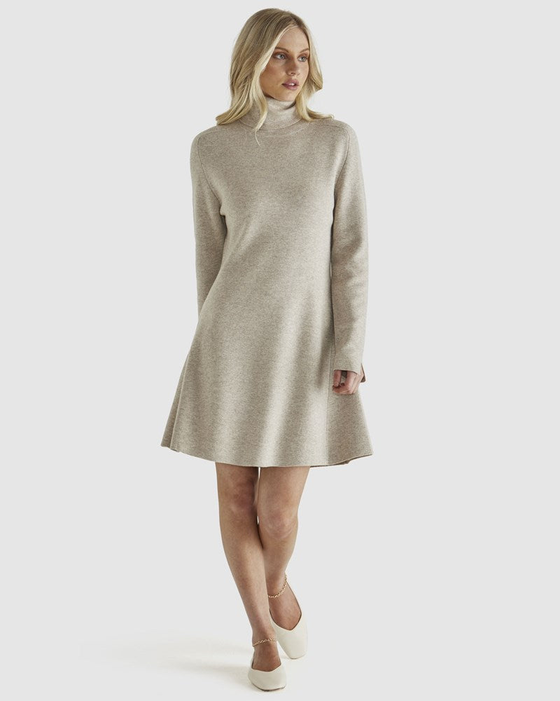 The Baldwin Knit Dress is your ultimate winter staple, combining style and comfort effortlessly. Featuring a chic turtleneck and flattering skater-style silhouette, it’s perfect for cooler days. The soft, medium-thickness knit and regular fit make it ideal for layering or wearing on its own for a polished, everyday look.