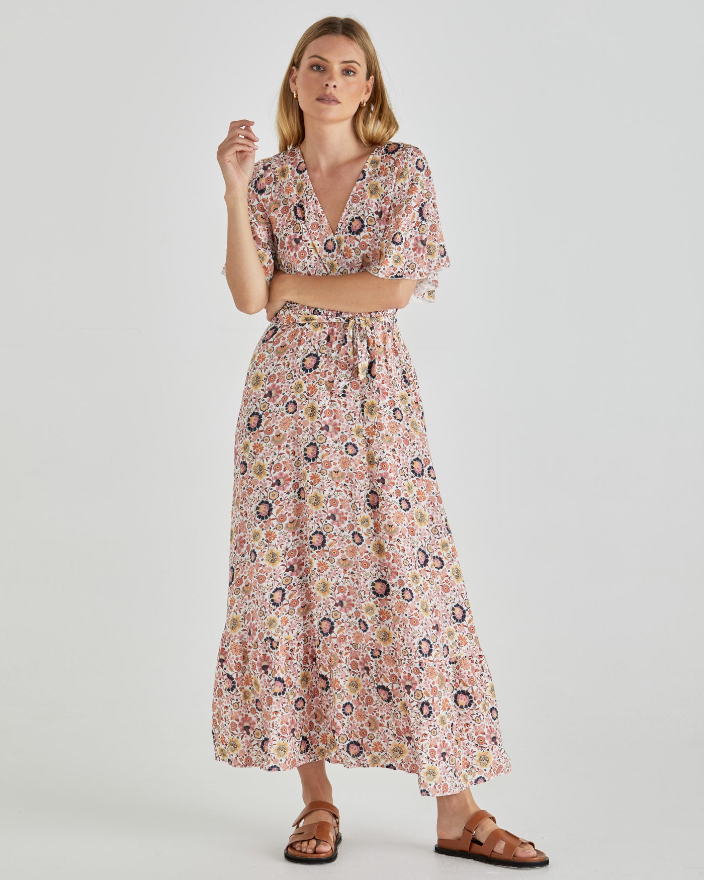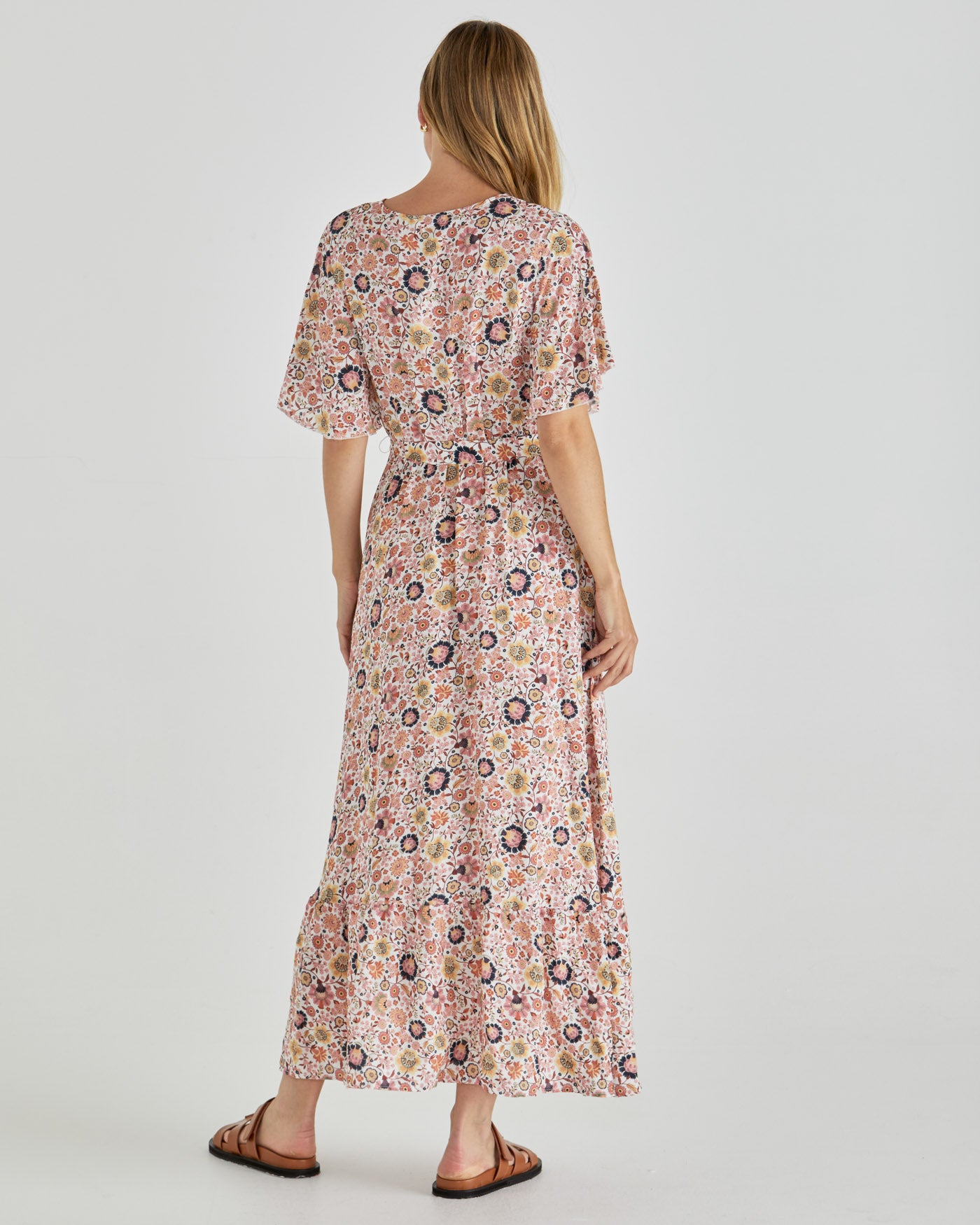 The Baxter Dress delivers all the dreamy vibes with its wrap style, fluted short sleeves, and midi length. Soft and flowy, it’s the perfect pick for feeling fab and put-together.