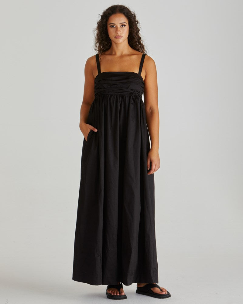The Delaney Maxi Dress is your easy answer to sun-soaked days. With ruched bust detailing, adjustable straps and pockets, it’s equal parts flattering and functional. The shirred back adds all-day comfort. Effortless, timeless and made for summer moments.