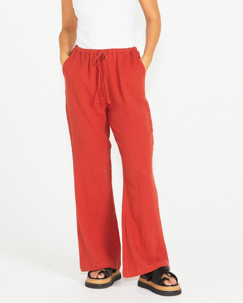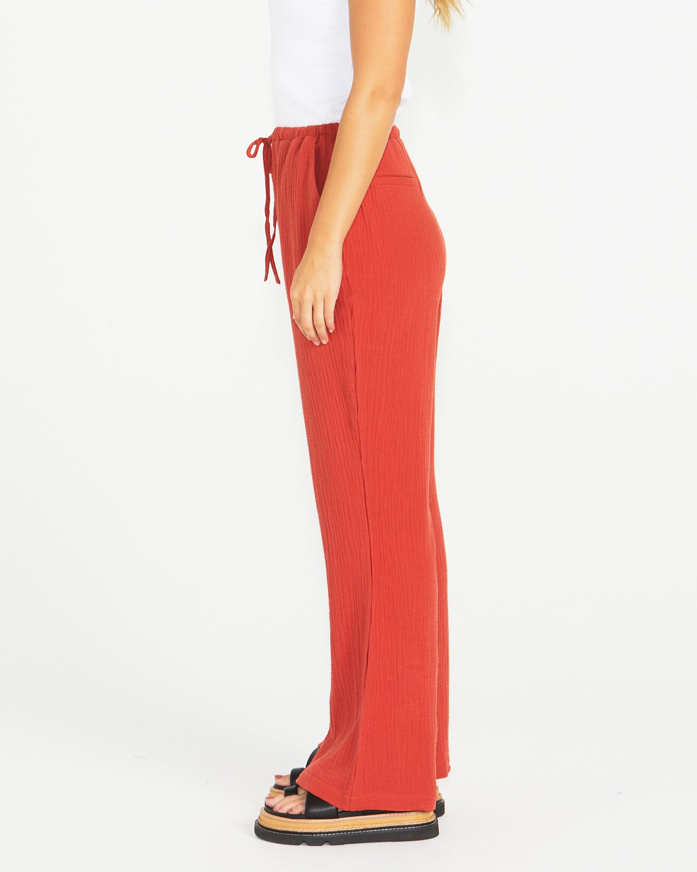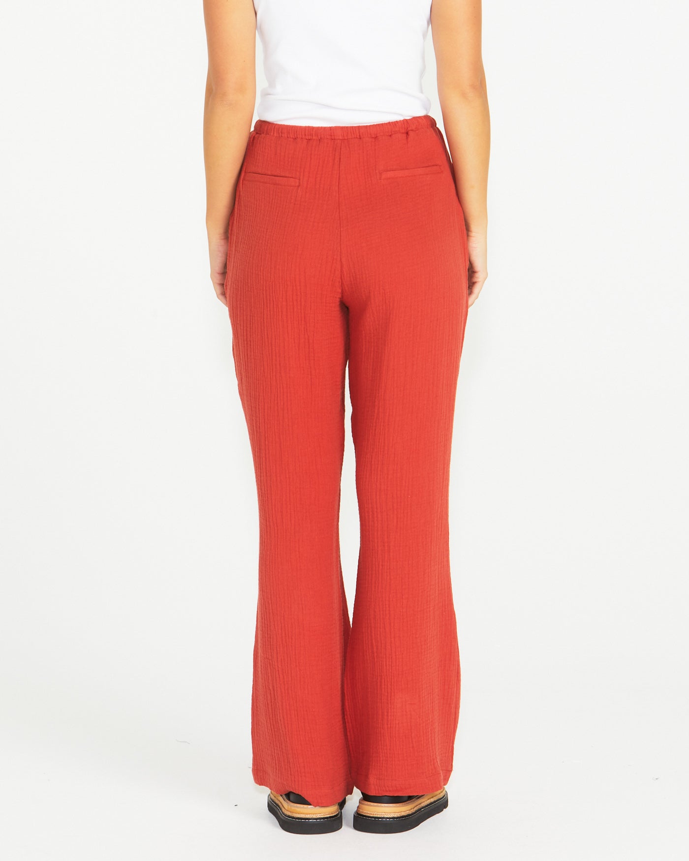 These kick-flare pants feature an elastic drawstring waist and side pockets for all-day ease. With their regular fit and playful silhouette, they elevate your everyday basics. Pair them with your favorite tank or blouse for an effortless outfit.