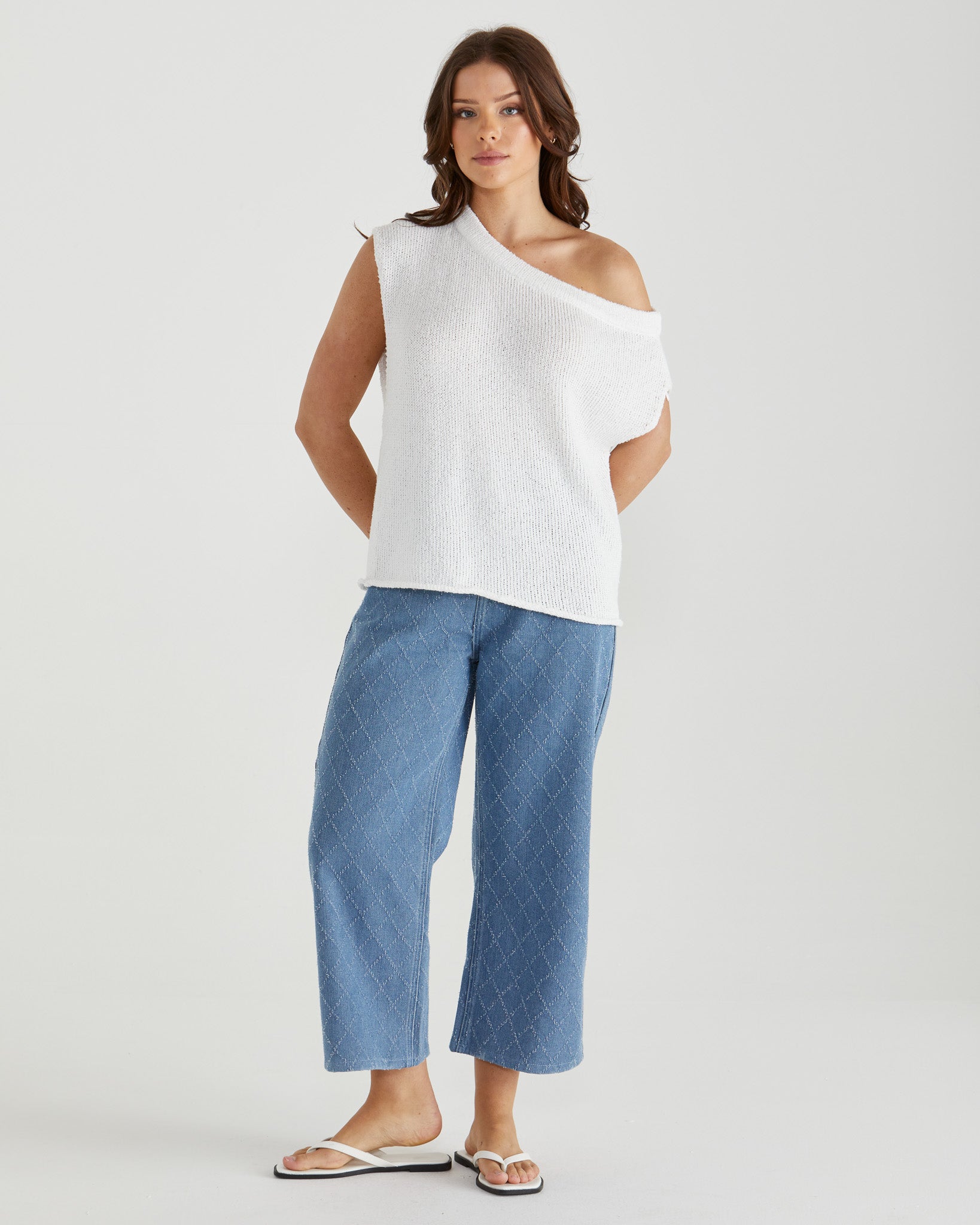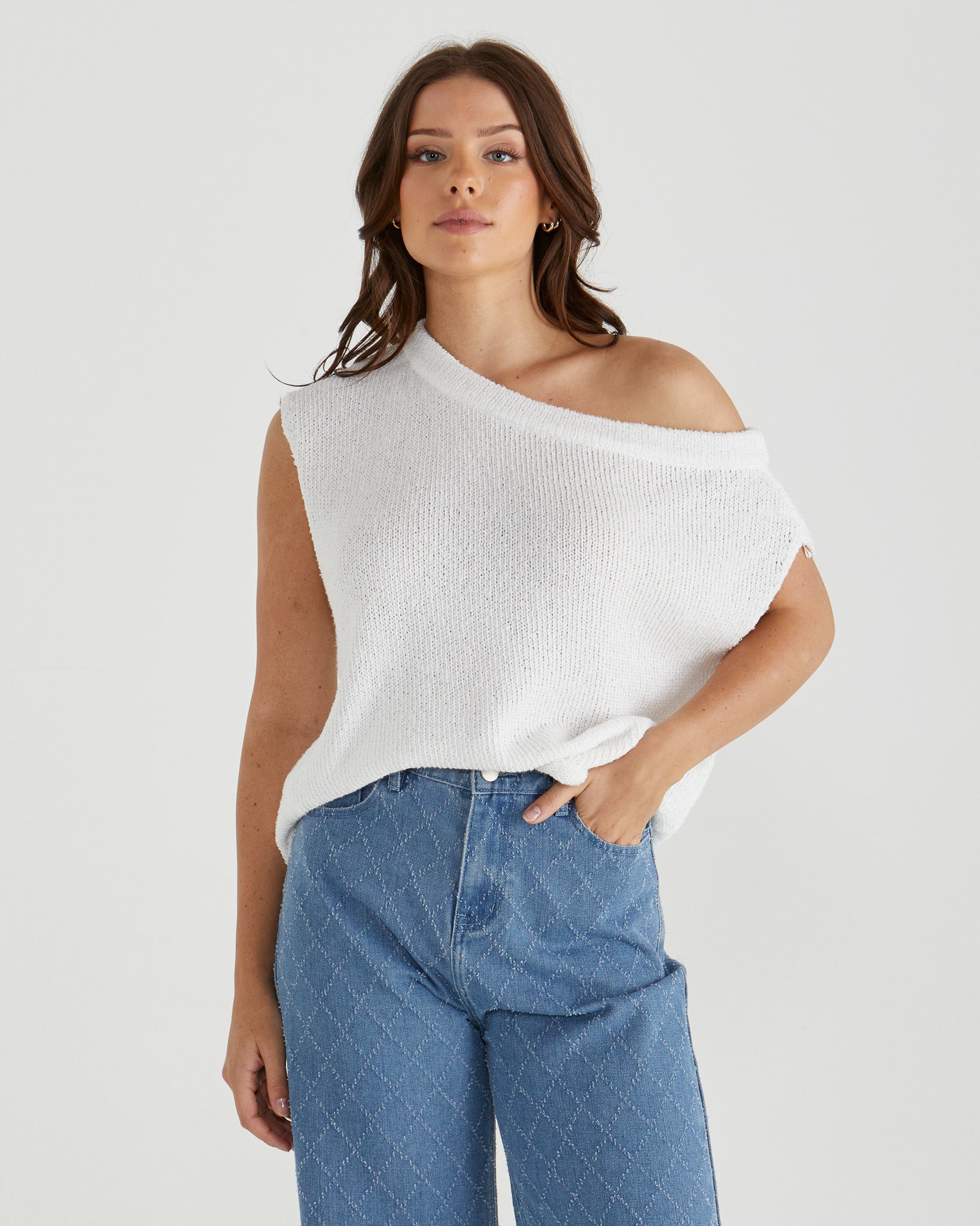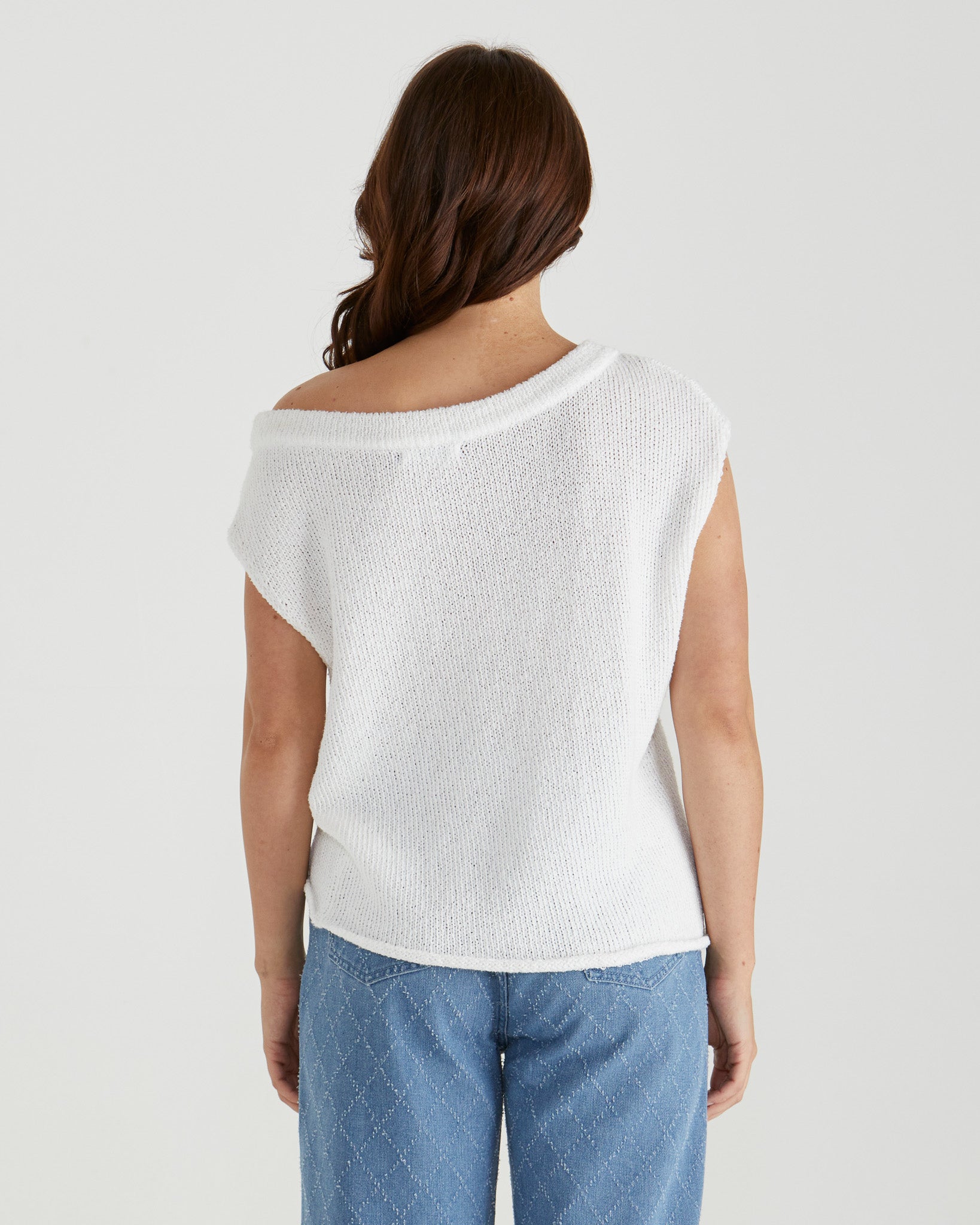 The Jac Top brings a modern twist to classic knitwear with its textured fabrication and unique asymmetrical neckline. Designed for effortless styling, this relaxed-fit top features subtle ribbing at the neckline and a slightly rolled finish at the hem for an understated yet elevated look.