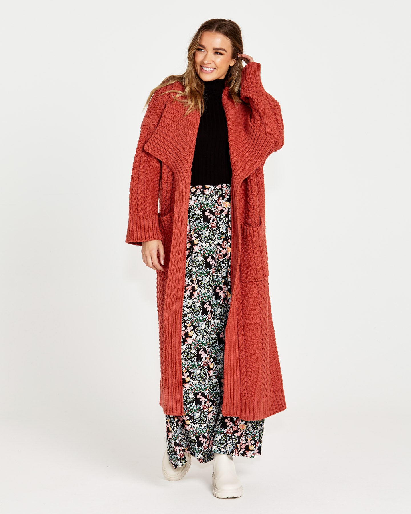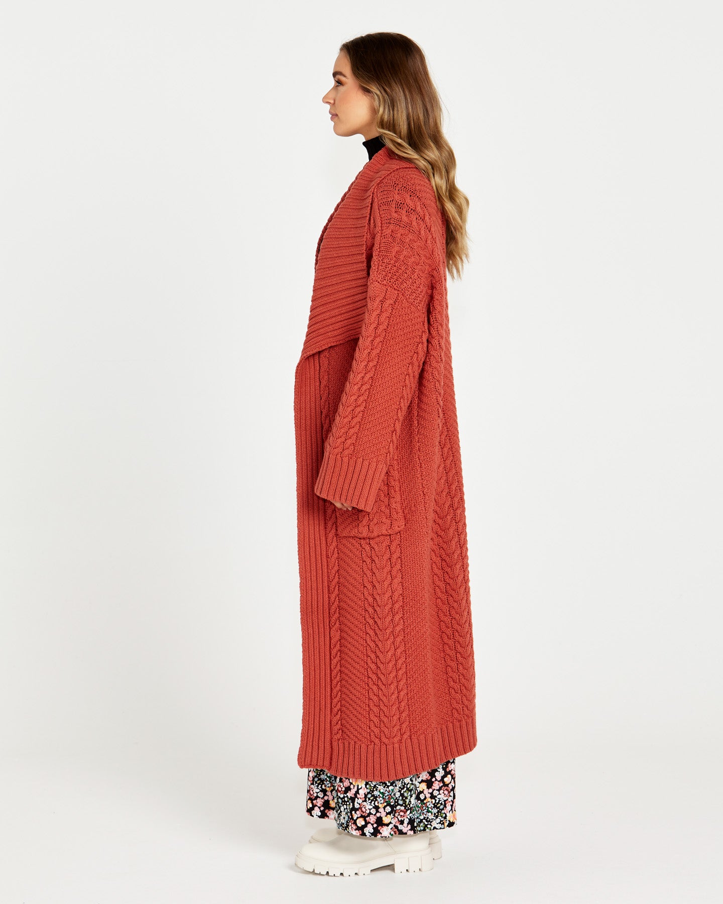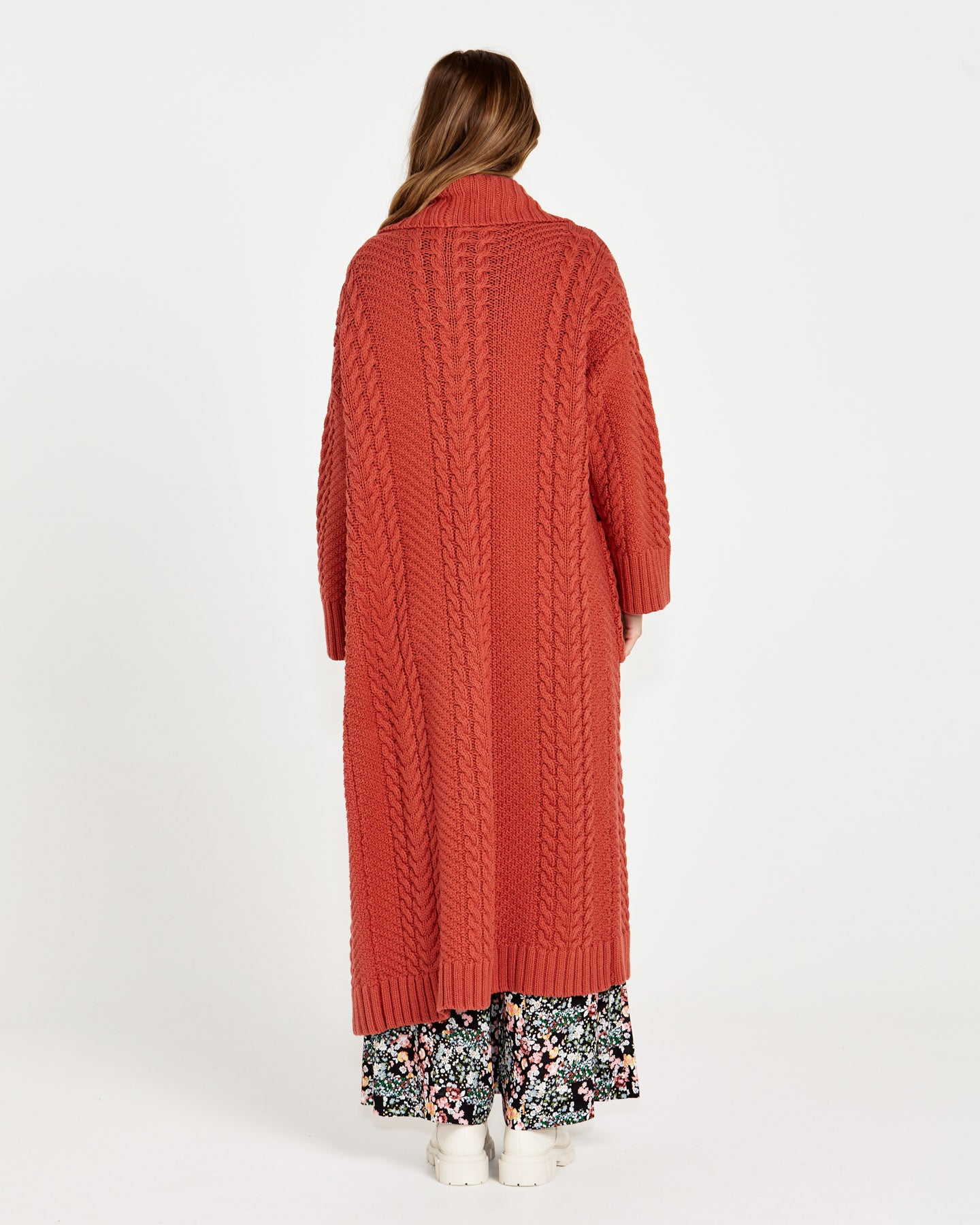 Jacinta Oversized Cable Knit Cardi - Rosewood