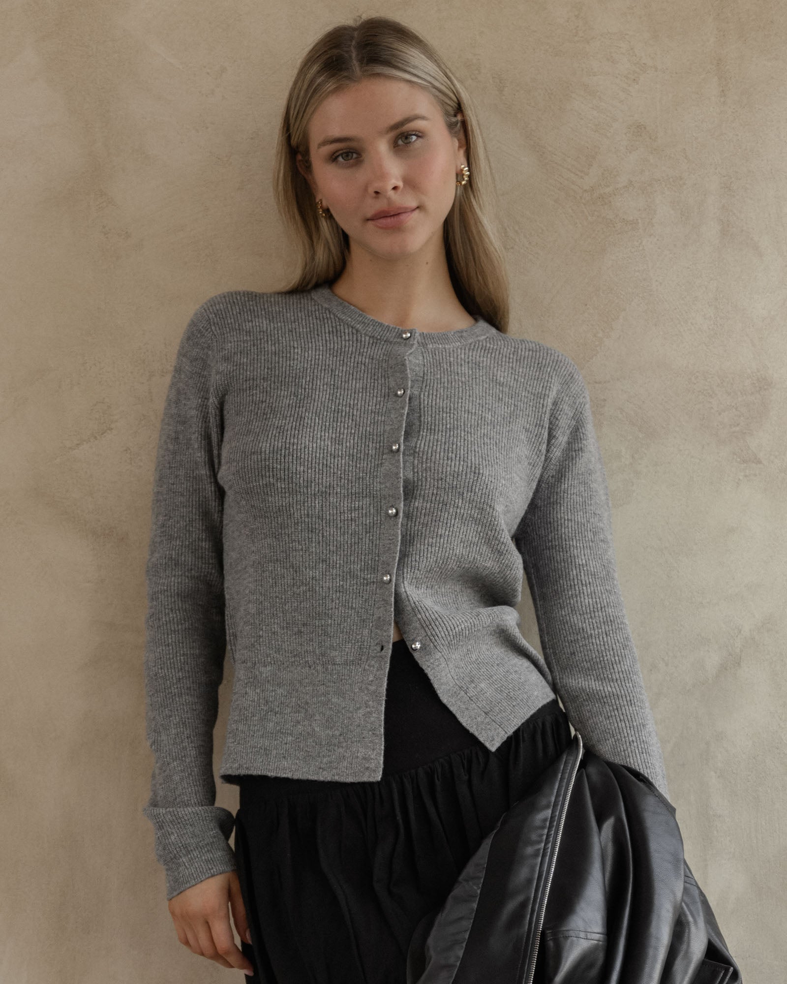 Effortlessly stylish, the Jagger Cardi features the same soft knit and elegant silver ball buttons as its counterpart, with thin rib knit details for added texture. Its regular fit ensures it’s an easy-to-style piece for everyday chic.
