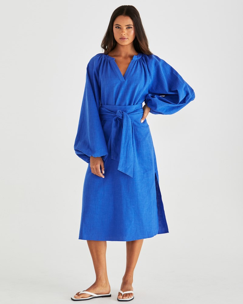 Easy and breezy, the Jana Obi Belt Dress brings soft structure with a wide self-fabric belt. Its relaxed shape and flowy sleeves keep it cool and comfy. On-trend with just enough shape to feel elevated.