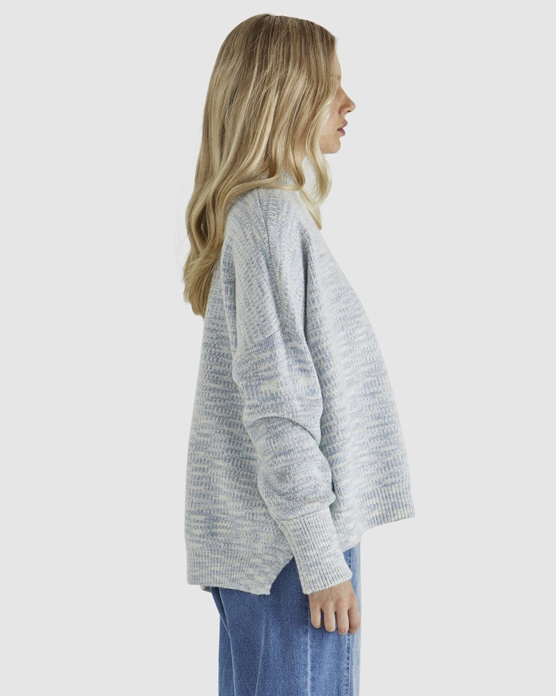 The Kirsha Knit offers a relaxed silhouette with thoughtful details. Made from soft knit fabric, it features a round neck with a wide neckband, split hem, and turn-back cuffs. This versatile piece pairs effortlessly with jeans or skirts for an elevated, casual look.
