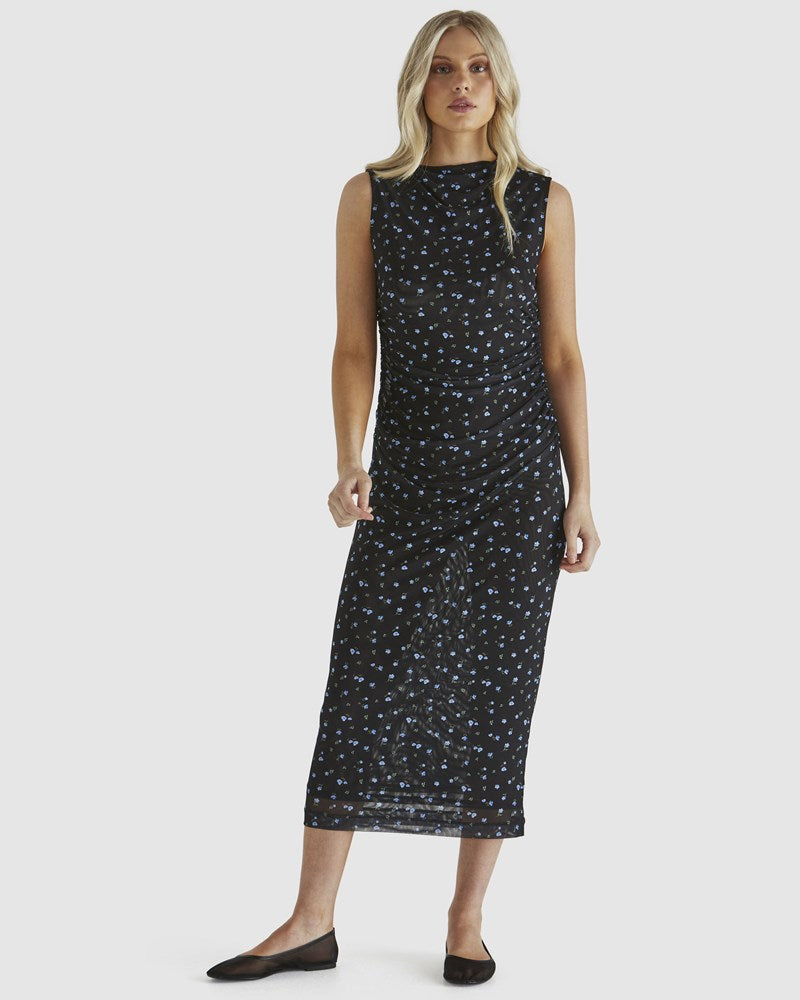 The Lauretta Mesh Dress is an elegant option for evening wear. Its mock neckline, side ruching details, and printed mesh fabric create a fitted silhouette, while the lining ensures a comfortable and flattering fit. Perfect for special occasions or nights out.