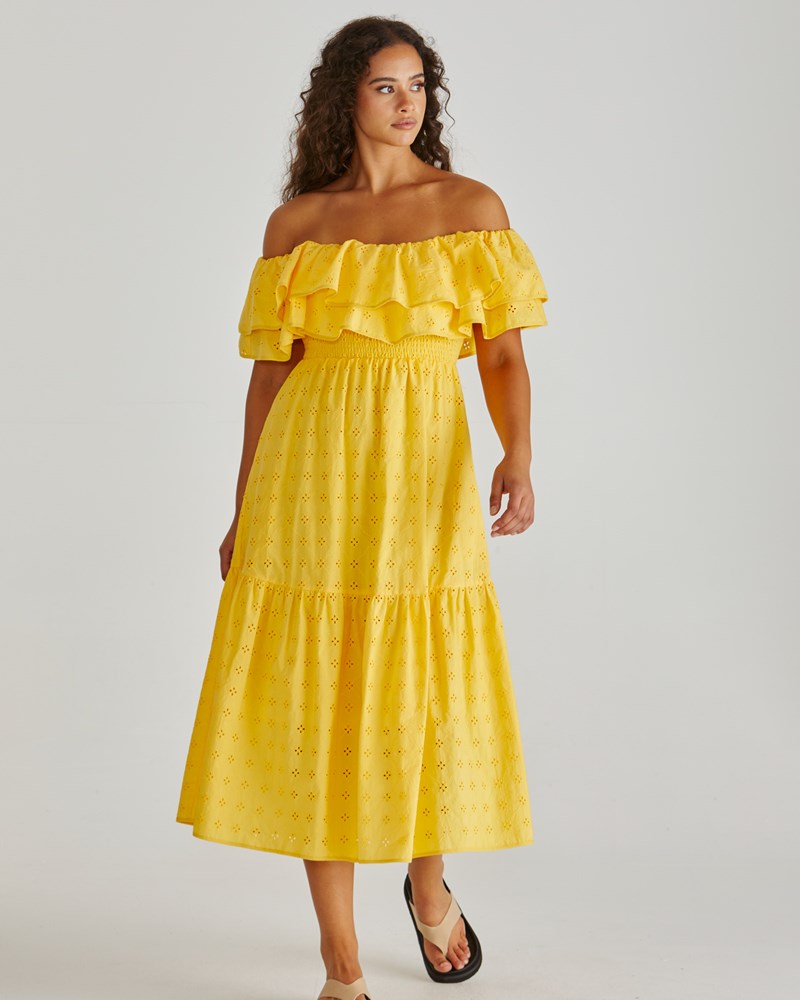 Lenny Ruffle Off Shoulder Dress - Yellow