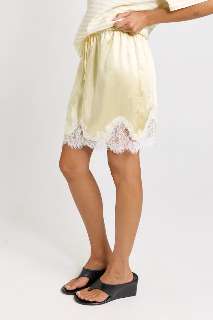 Maddie Lace Hem Mini Skirt - Lemon/White Lace