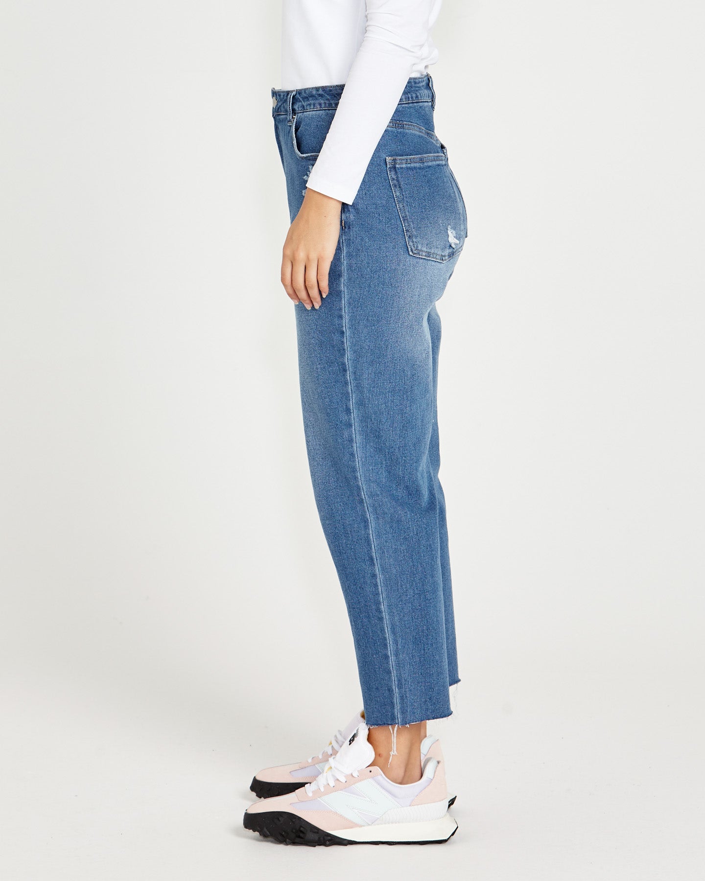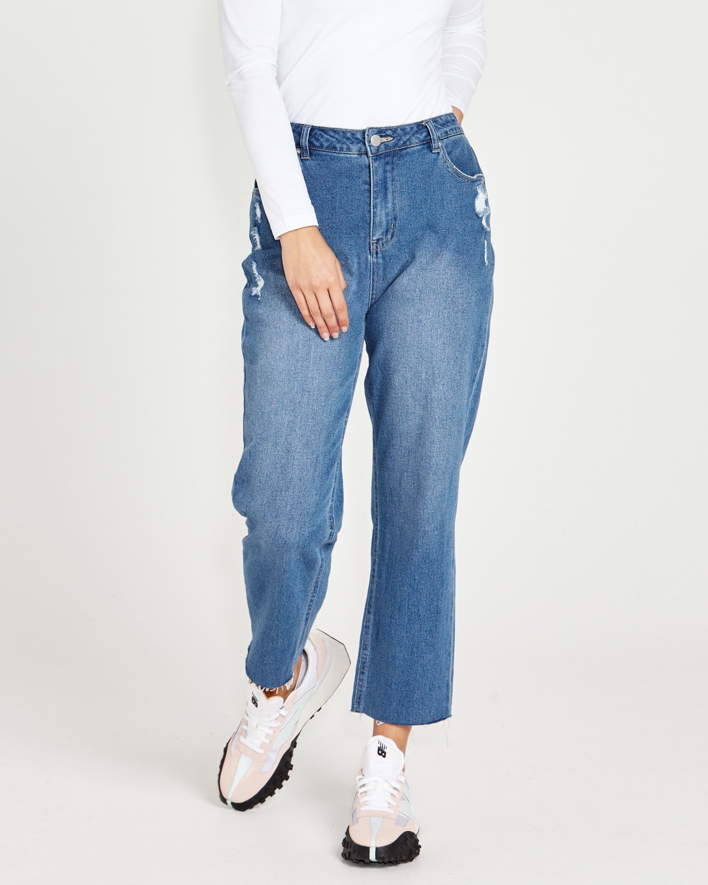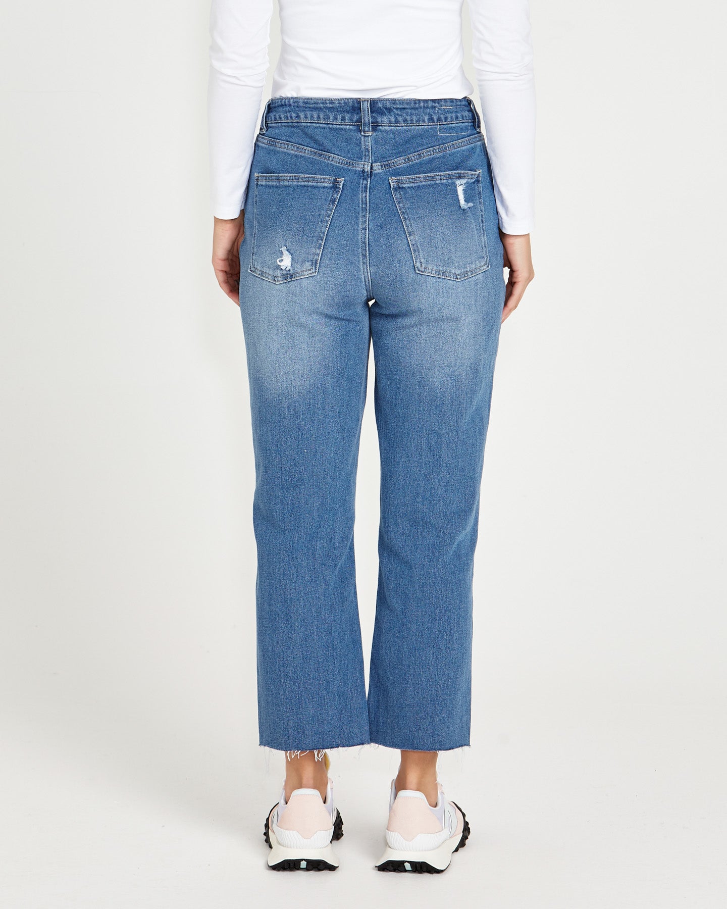 Mavourne Straight Leg High Waist Distressed Denim Jeans - 80 Wash Blue
