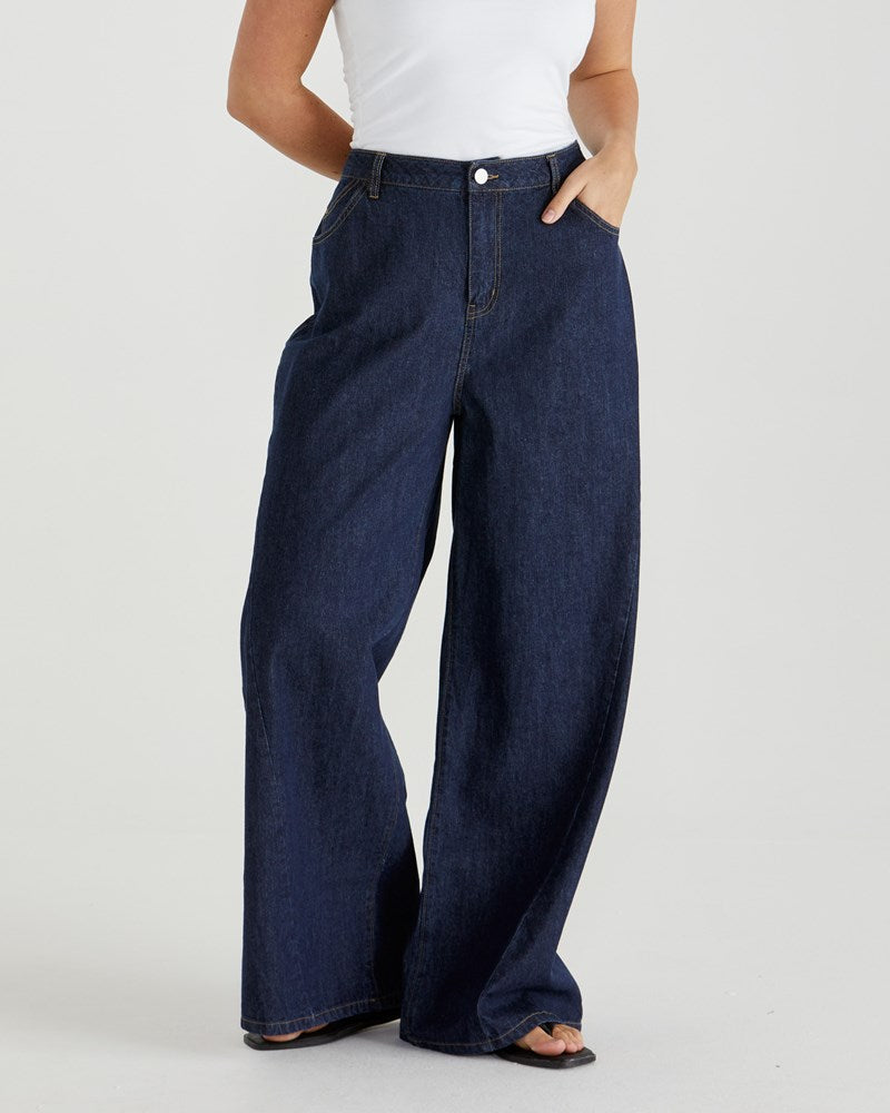 The Myla Jean combines practicality and style with its wide-leg design and high-waisted fit. The elasticated back waistband adds comfort, while the zip-front opening ensures a polished look. Perfect for pairing with fitted tops or oversized shirts for a modern, versatile outfit.