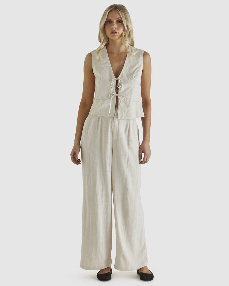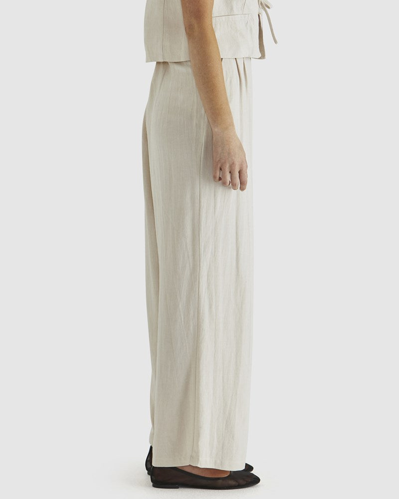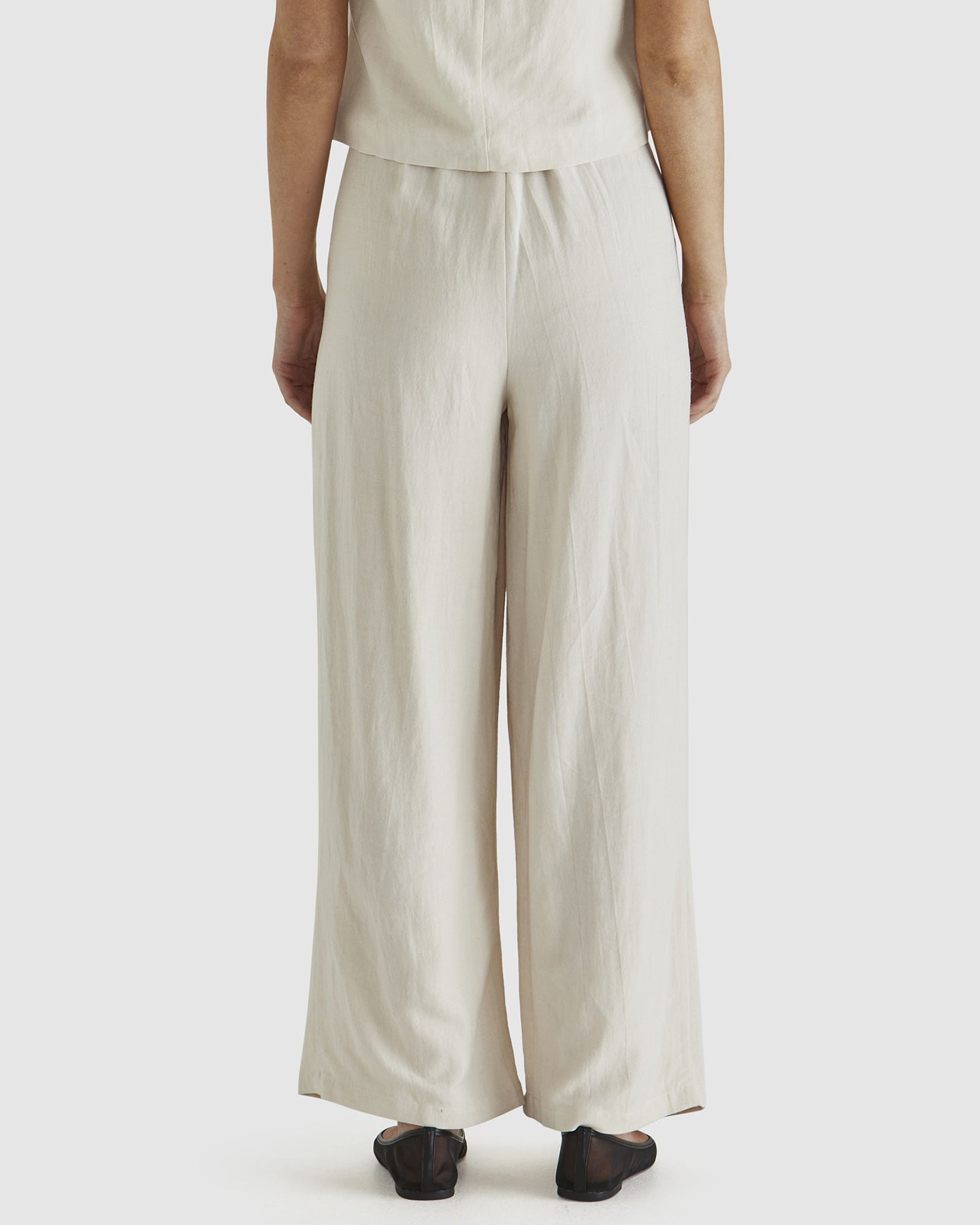 Effortlessly chic, the Natalia Pant features a fly-front opening, a wide-leg profile, and soft drapey fabric. The back welt pocket detail adds a tailored finish, making these pants an elegant choice for both office wear and casual outings.