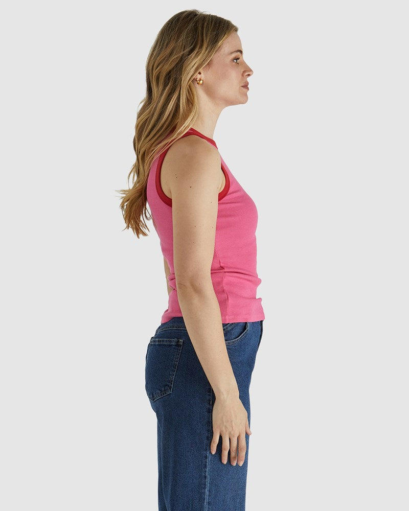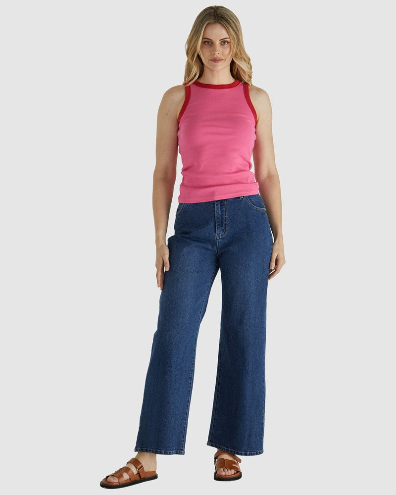The Noah Rib Tank is a fitted, stylish essential with a razor-style neckline and hip-length cut that adds a touch of modern edge. Crafted with contrast ribbing for a standout look, this tank is perfect for layering or wearing solo on sunny days. It?s an effortlessly cool addition to your summer wardrobe, offering comfort and style in one.