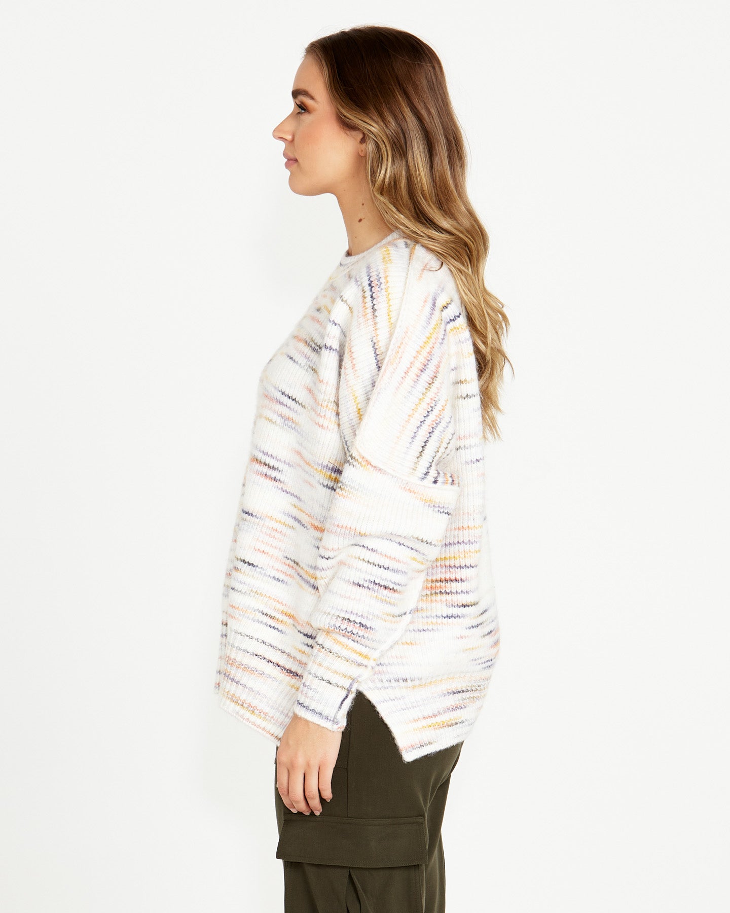 Pepper Space Oversized Wool-Blend Jumper - Cream Rainbow Marle