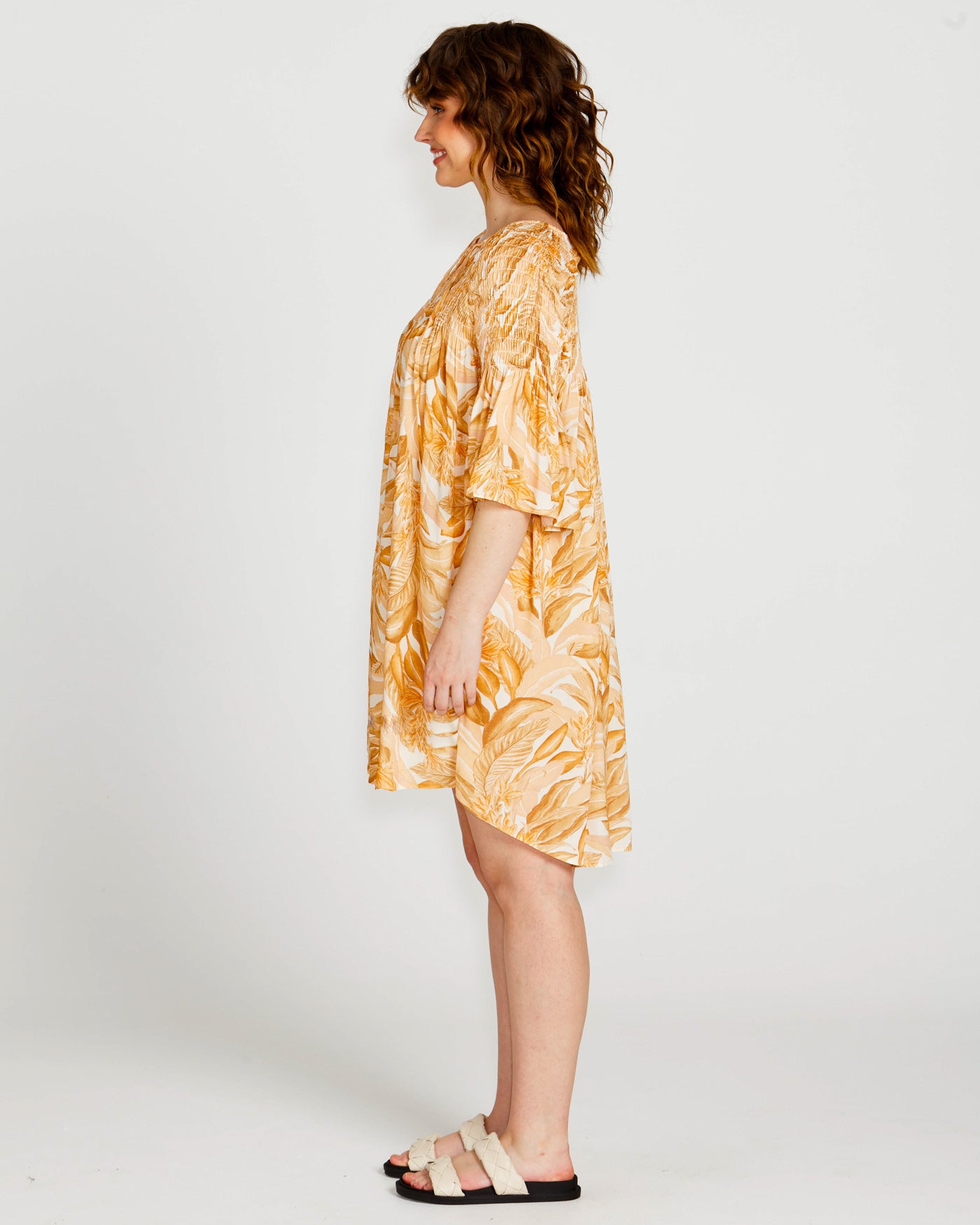 Portia Relaxed Smock Mini Dress - Palm Spring Yellow