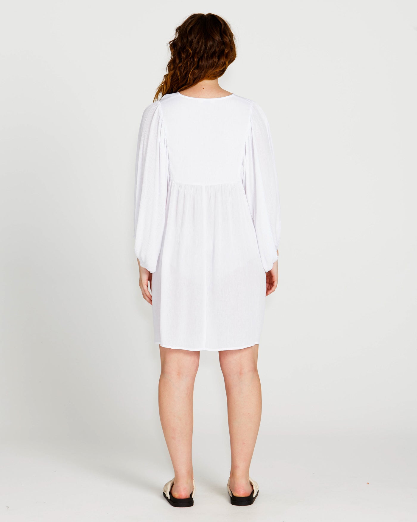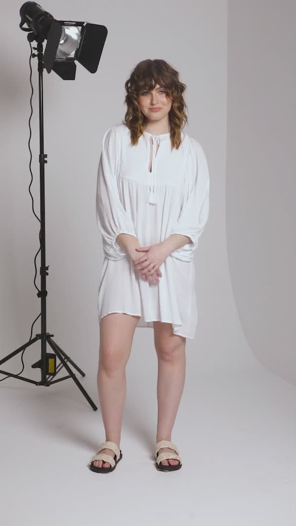 Rava Boho Smock Flowy Mini Dress - White