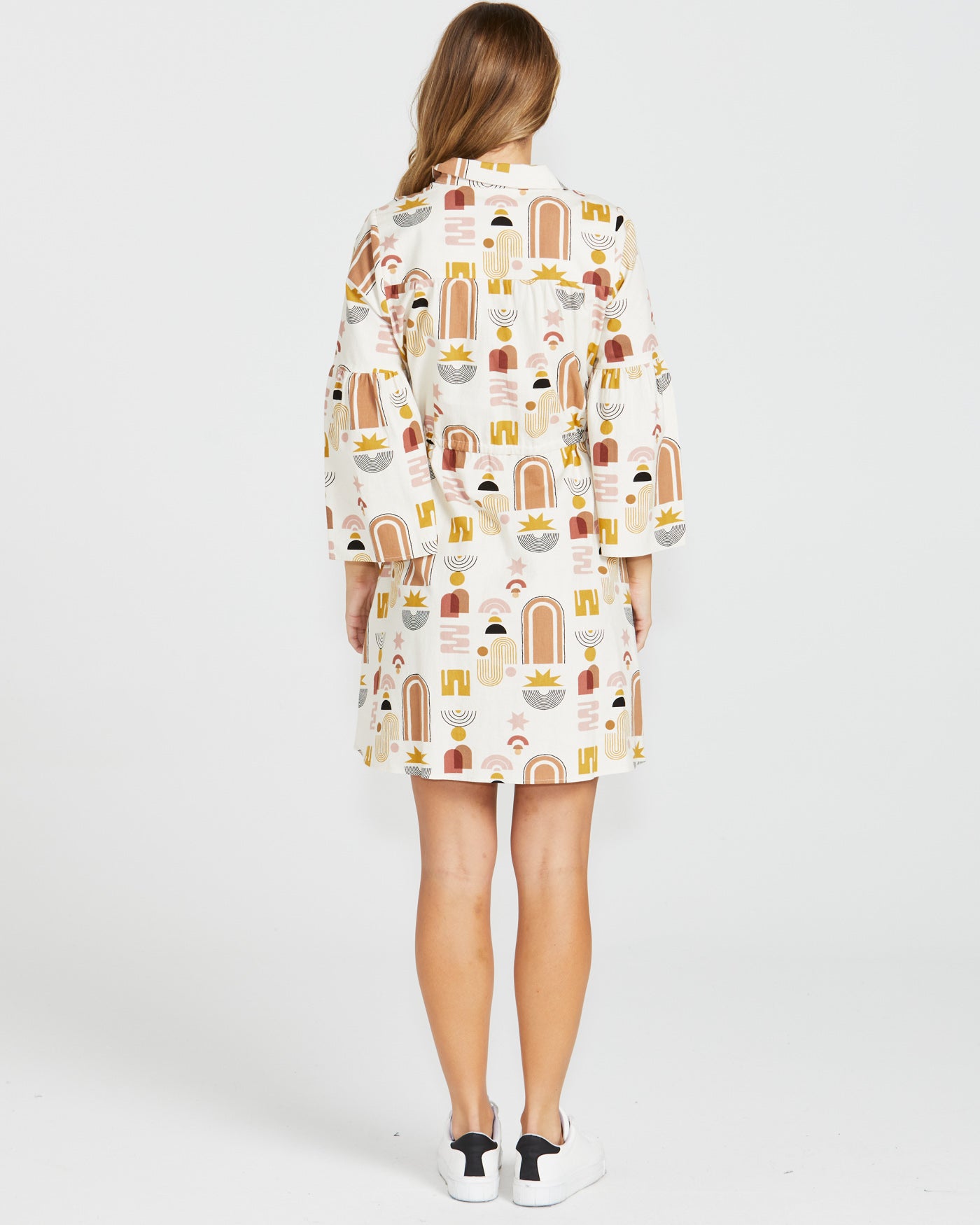 Roxy Balloon Sleeve Mini Dress - Abstract Print