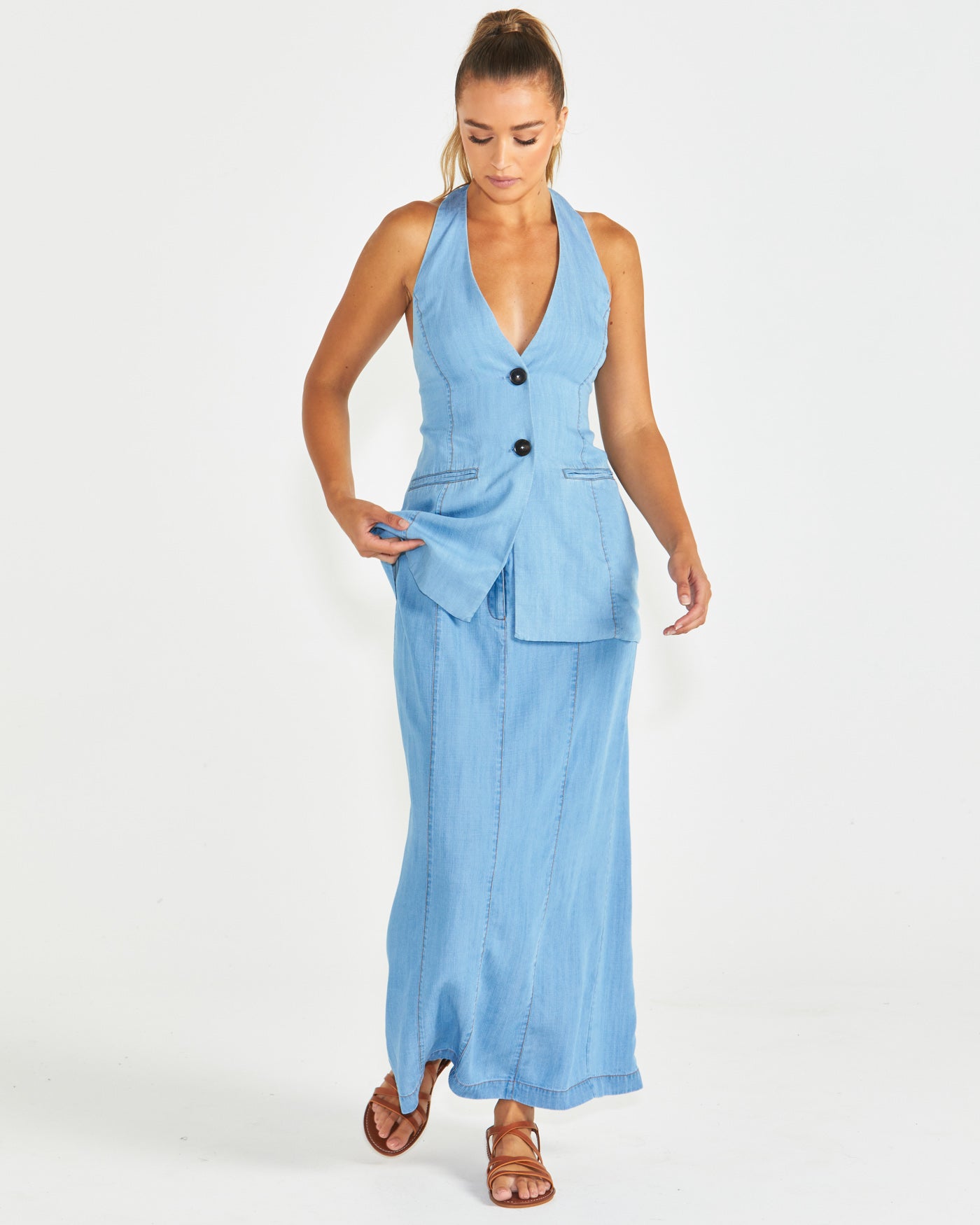 Seville Maxi Skirt - Chambray
