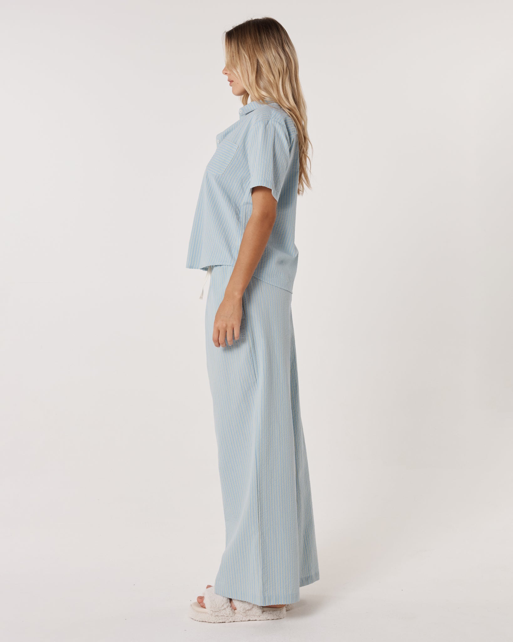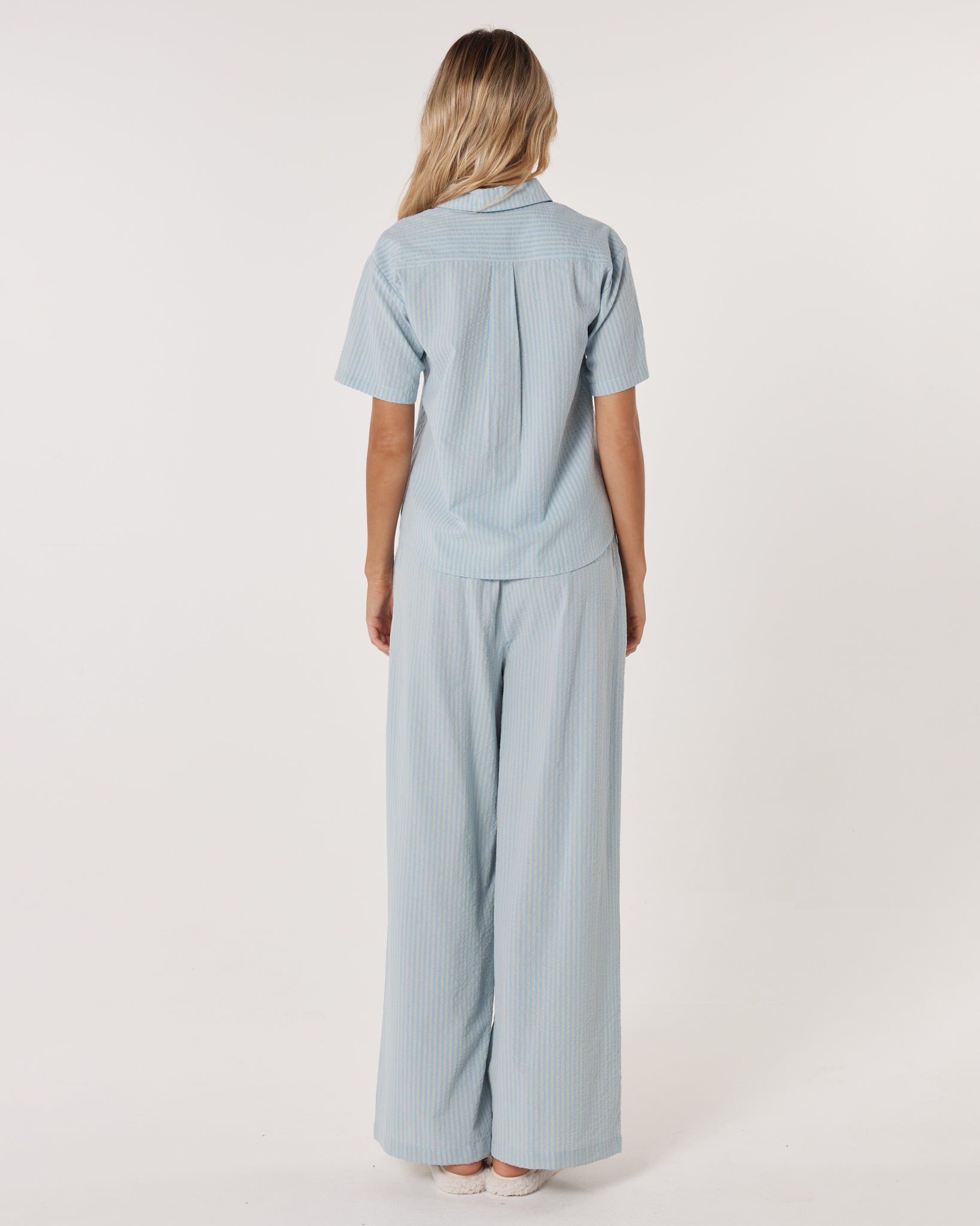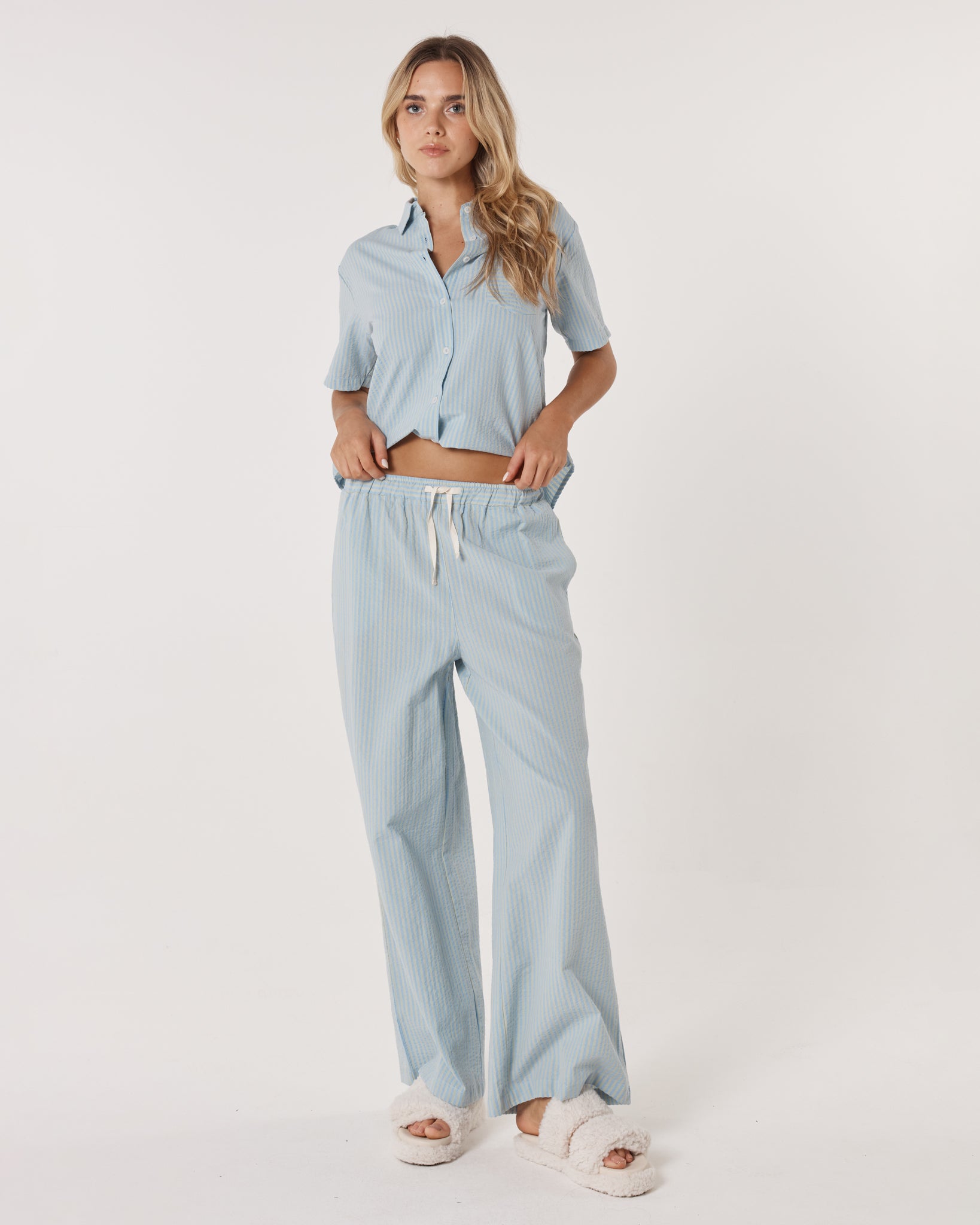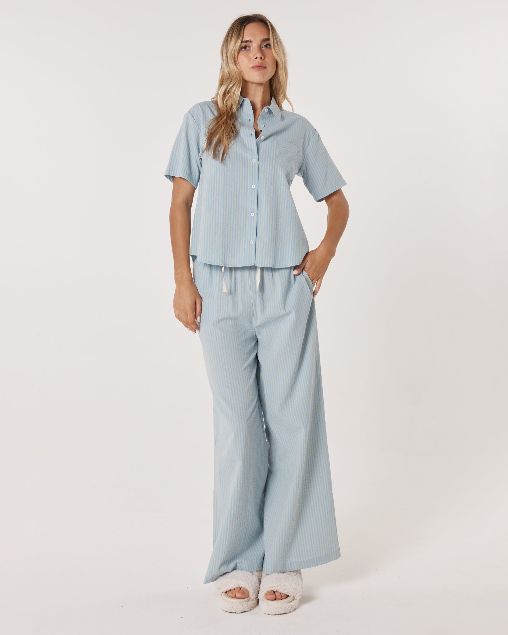 Cozy up in the ultimate PJ set, designed for both comfort and style. Featuring a button-front opening and a patch pocket, it's effortlessly cool for lounging. The drawcord waist and side pockets on the pants add a playful, practical touch. Whether you're sleeping in or chilling out, this set is your new favourite go-to!
