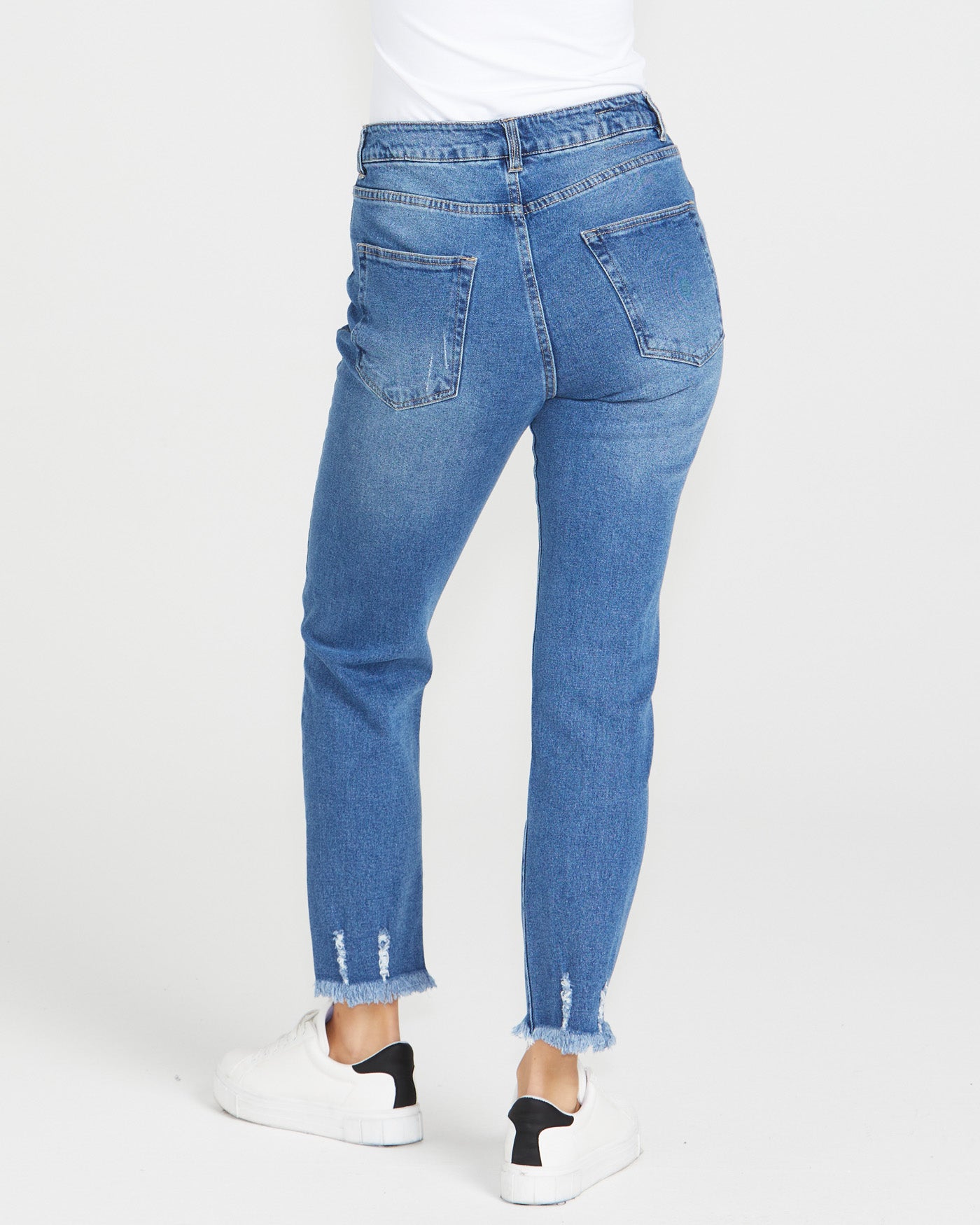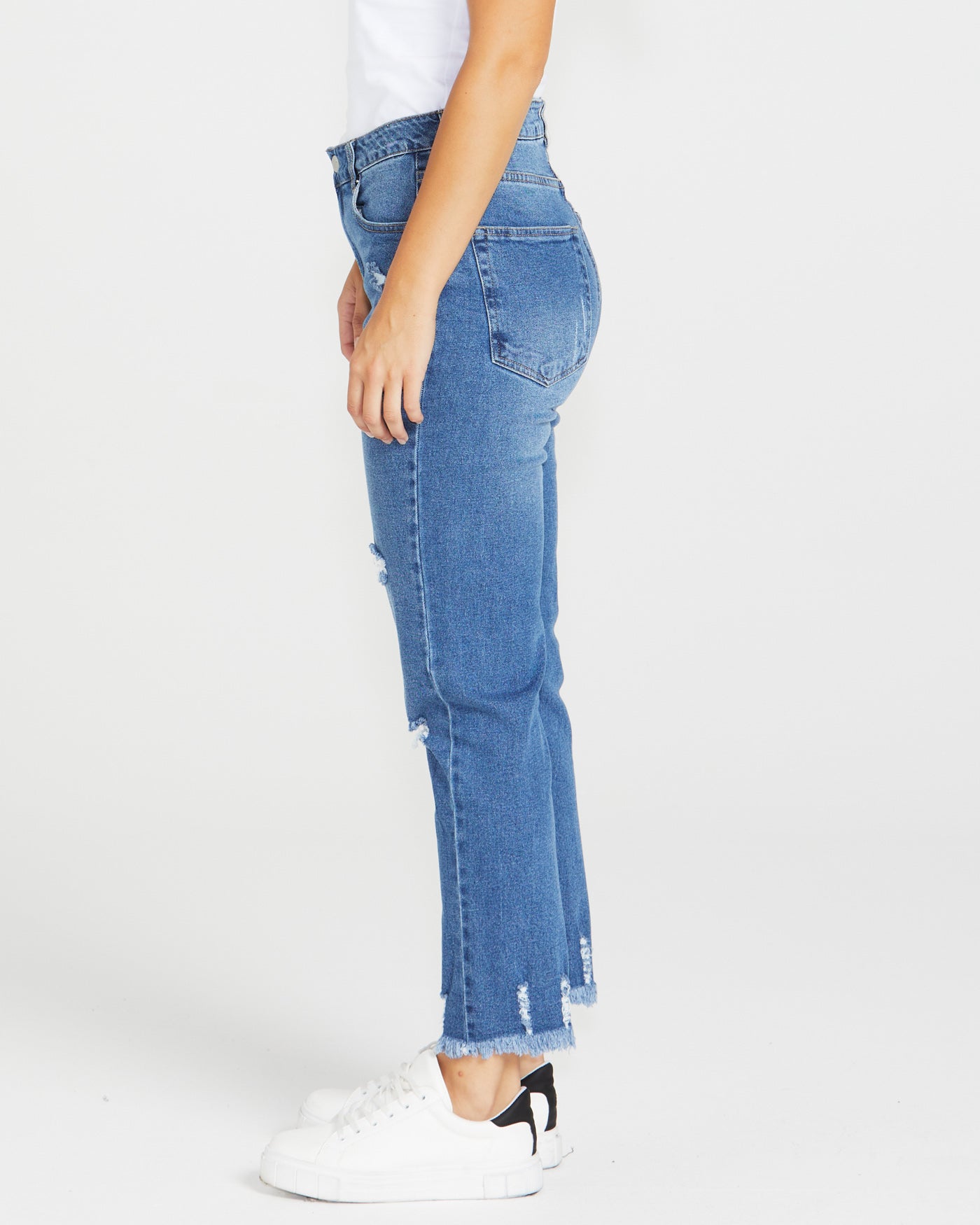 Get ready to rock and roll with the Suzi Jean - the perfect addition to your edgy wardrobe! These jeans feature a mid rise and slim hip for a flattering fit, while tears and rips throughout give them a rebellious, rockstar vibe.