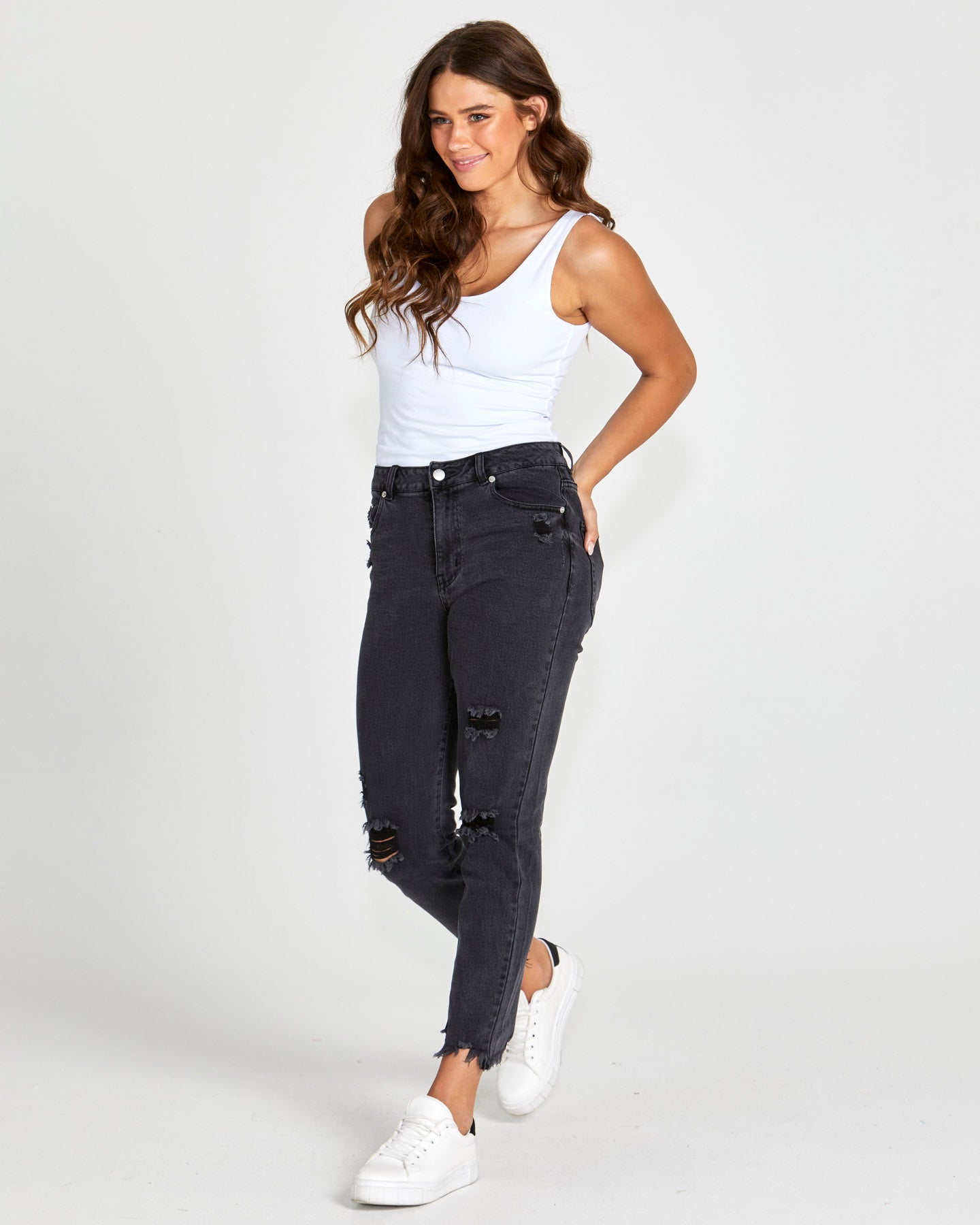 Get ready to rock and roll with the Suzi Jean - the perfect addition to your edgy wardrobe! These jeans feature a mid rise and slim hip for a flattering fit, while tears and rips throughout give them a rebellious, rockstar vibe.