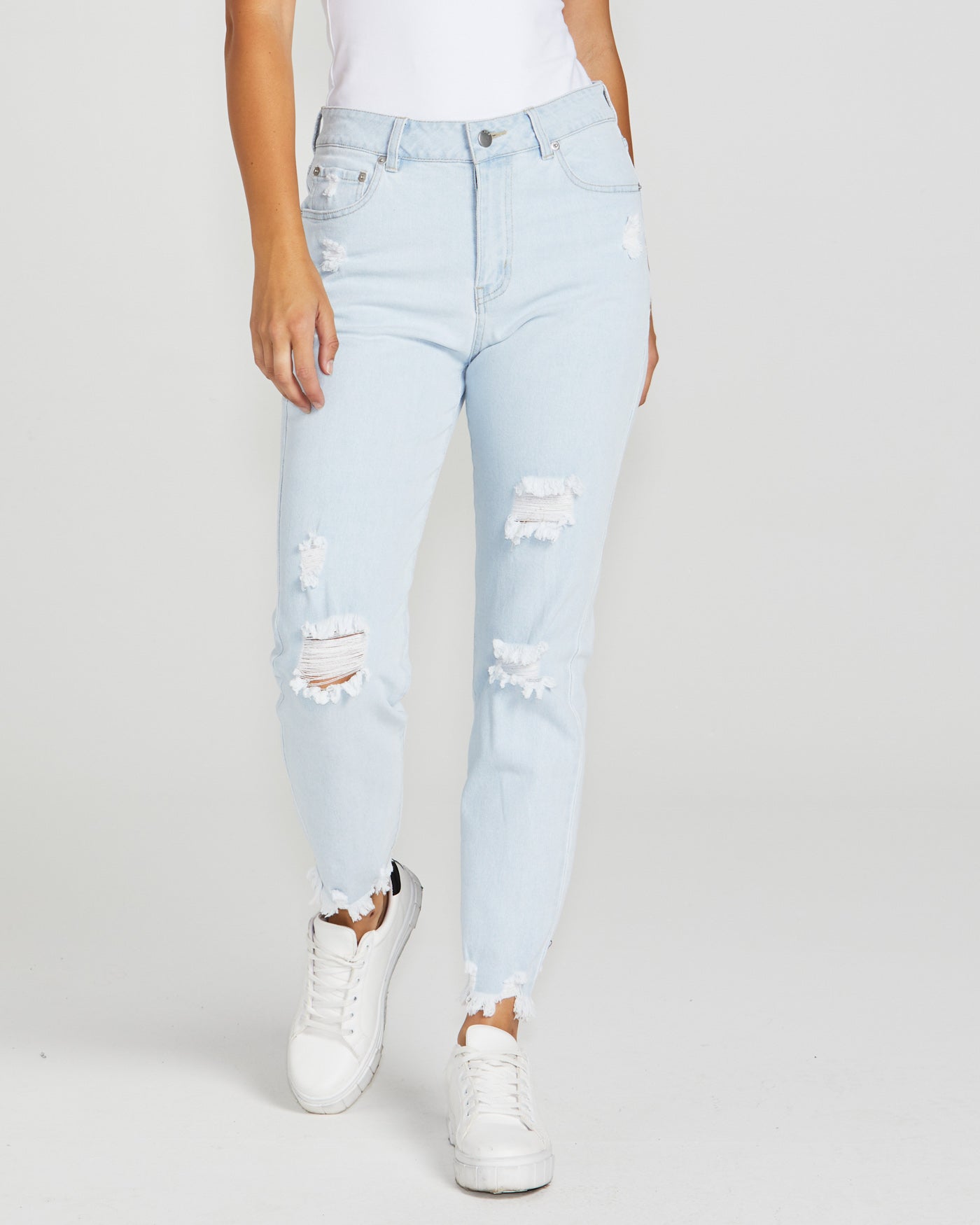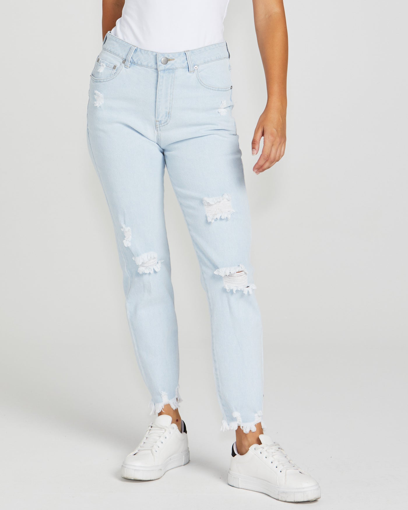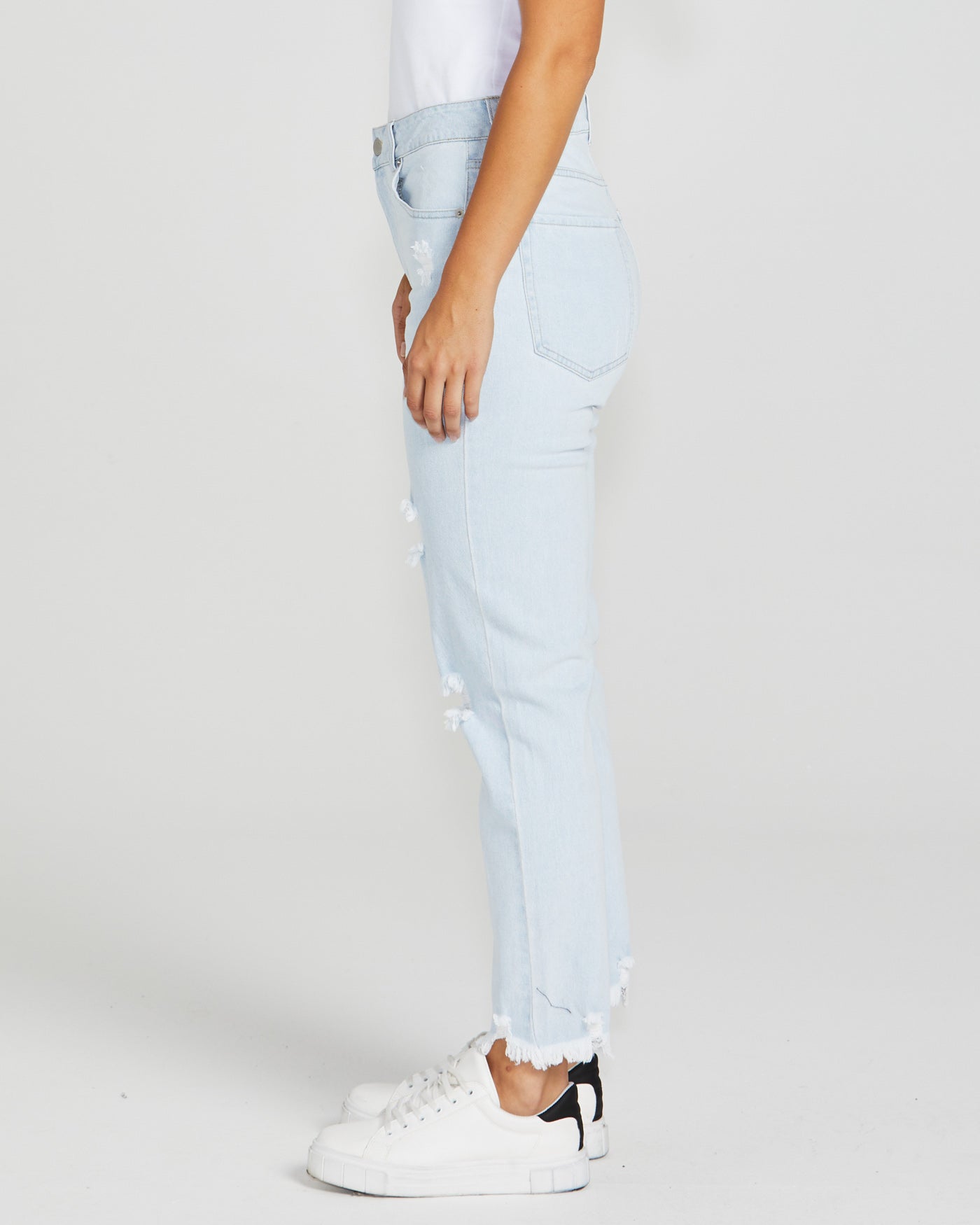 Get ready to rock and roll with the Suzi Jean - the perfect addition to your edgy wardrobe! These jeans feature a mid rise and slim hip for a flattering fit, while tears and rips throughout give them a rebellious, rockstar vibe.