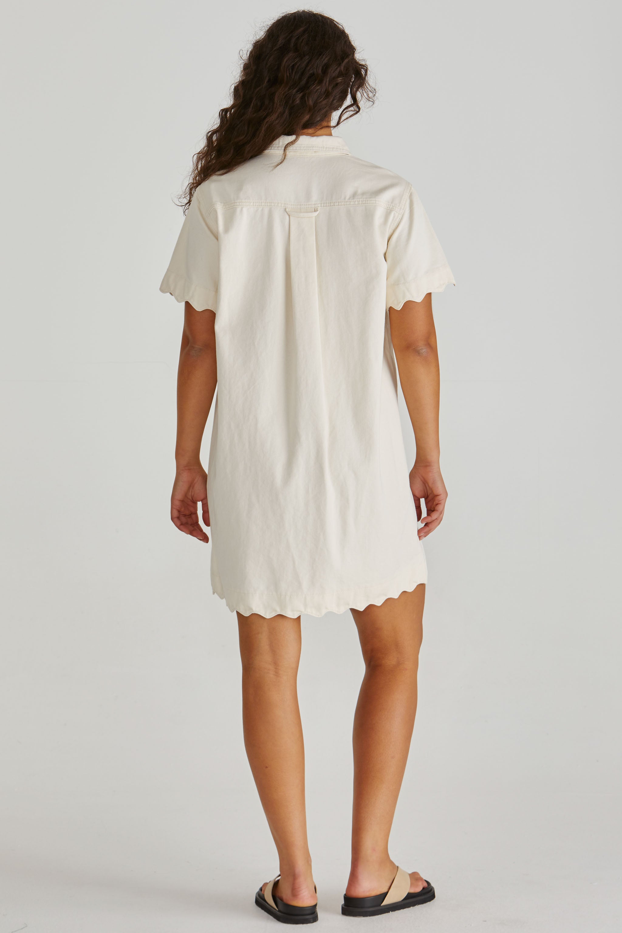 Vale Scalloped Denim Dress - Parchment
