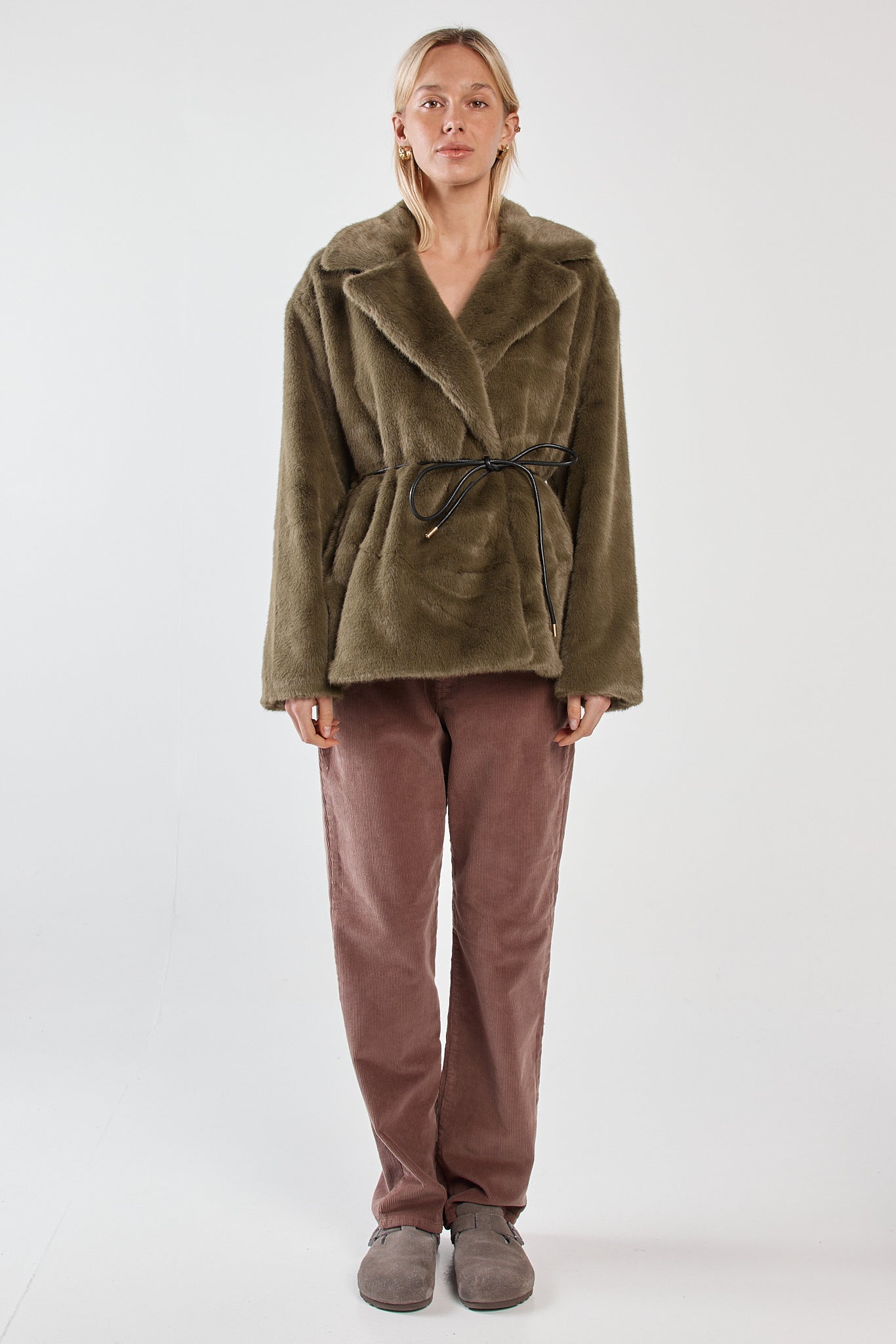 The Vivi Fur Jacket is statement outerwear with elevated ease. A snap closure and pleather rope belt create a defined yet effortless silhouette. Lined for comfort, it balances polish with on-trend texture. A transeasonal layer designed to turn heads.