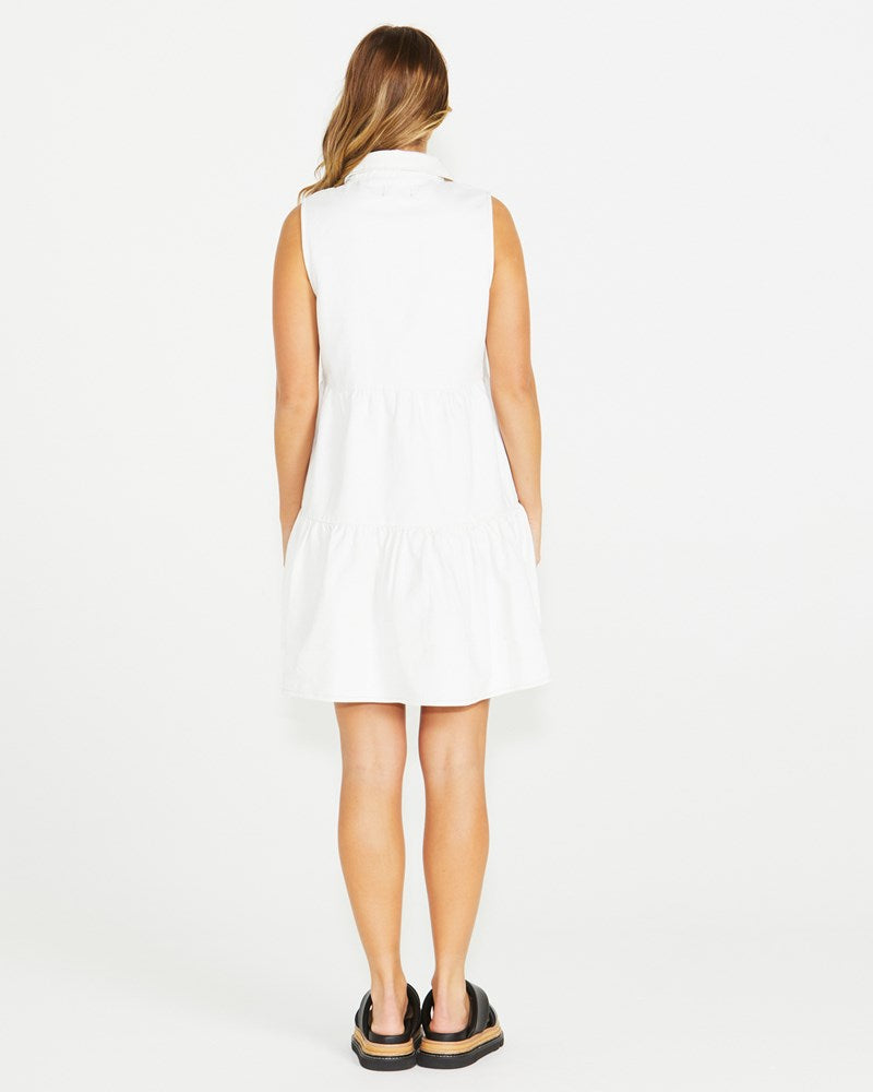 With a button-up front and mid-thigh length, this sleeveless dress offers both practicality and charm. Side pockets make it even more functional. Perfect for warm-weather days.