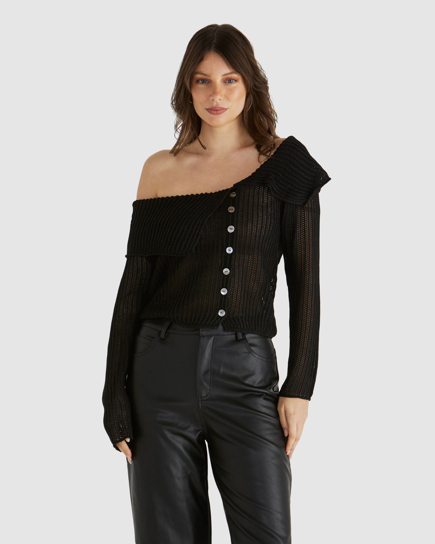 The Xander Cardi brings elevated comfort to your knitwear collection. Featuring an off-shoulder neckline, asymmetric button details, and medium knit thickness, this relaxed-fit cardigan is perfect for layering with effortless chic appeal.